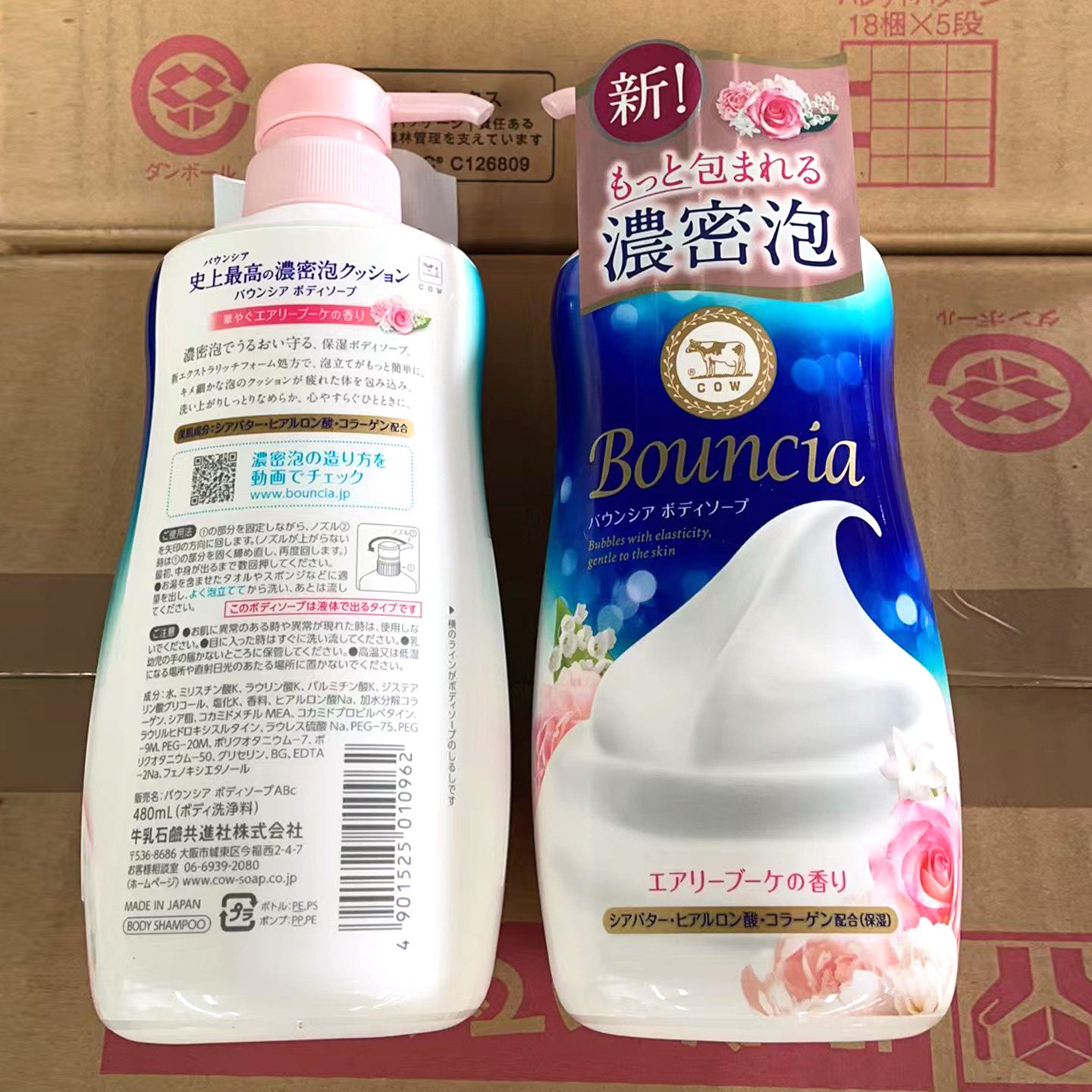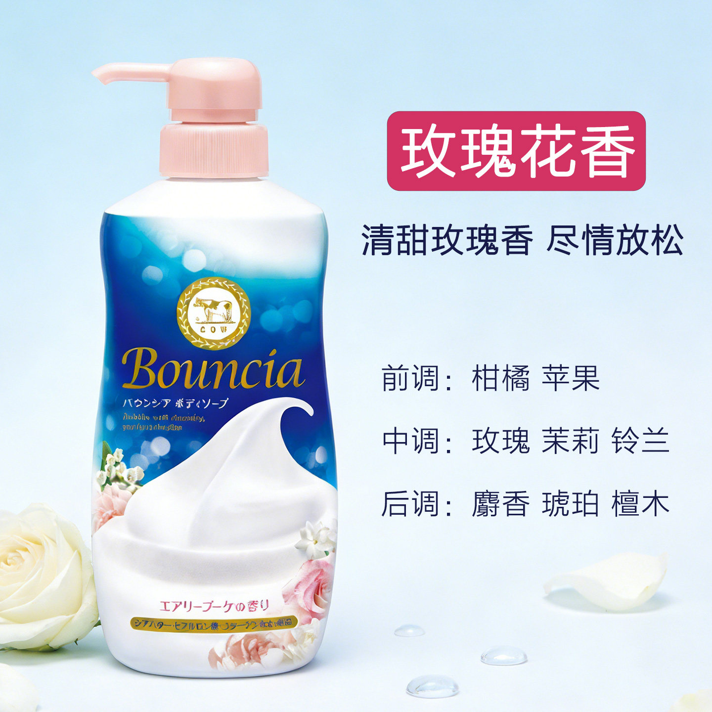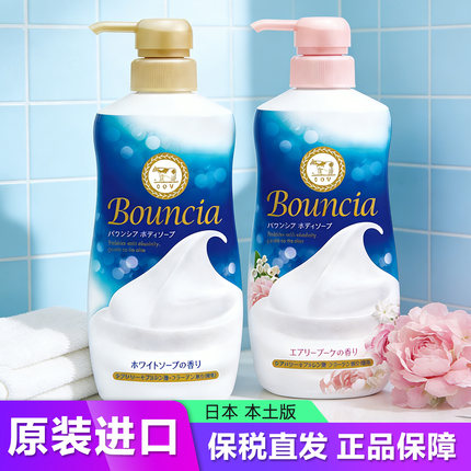 日本原装进口COW牛乳石碱沐浴露绵密泡沫牛奶玫瑰花香家庭480ml