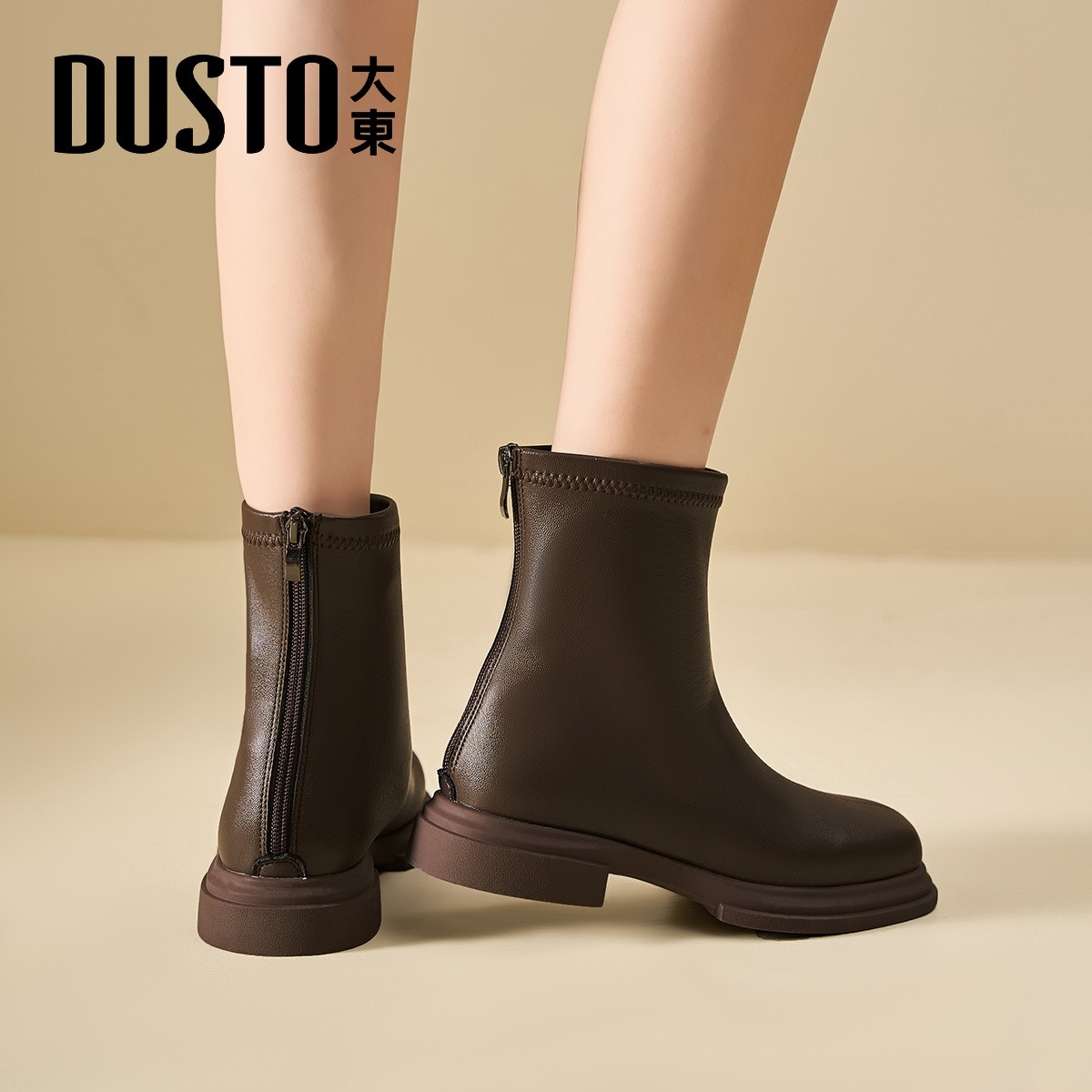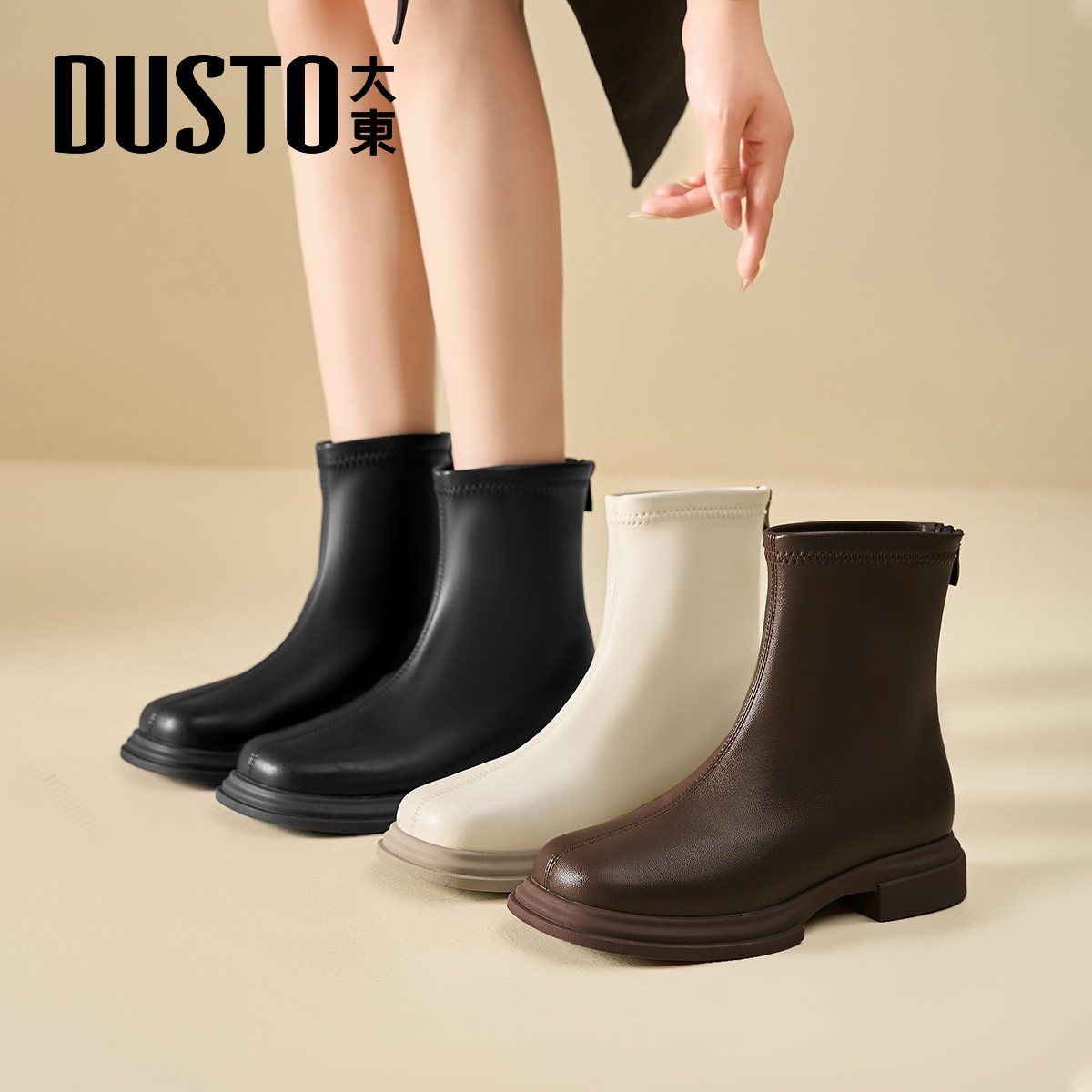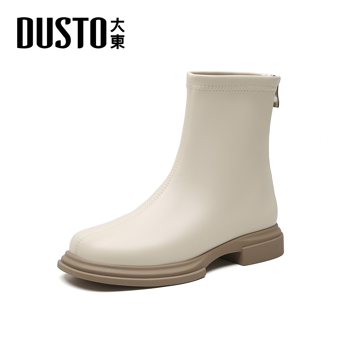 大东马丁靴女秋冬加绒2025新款小踝靴方头瘦瘦靴白色靴子法式短靴
