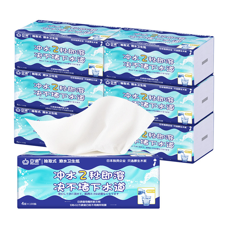 日诺溶水抽纸整件平板卫生纸可溶手纸母婴抽取式厕纸110抽4层1提