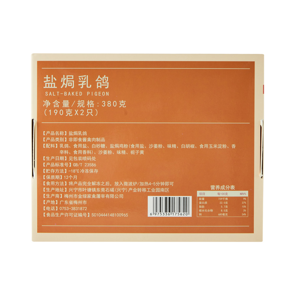盒马工坊 盐焗乳鸽 380g(2只)