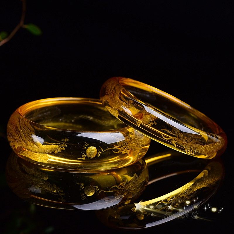 精品女款巴西黄水晶手镯 黄水晶龙凤手镯ins潮韩版时尚饰品