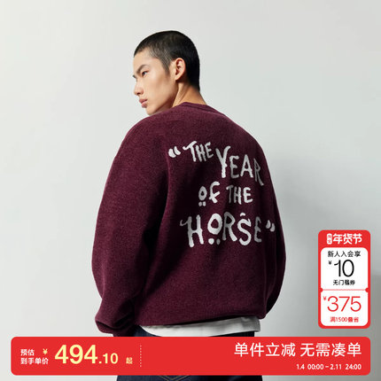 绫致杰克琼斯男春马年新年款字母提花植绒贴布宽松毛衣针织衫