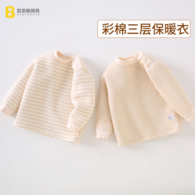 宝宝保暖上衣彩棉儿童内衣婴儿三层夹棉冬季男童女童纯棉加厚秋衣
