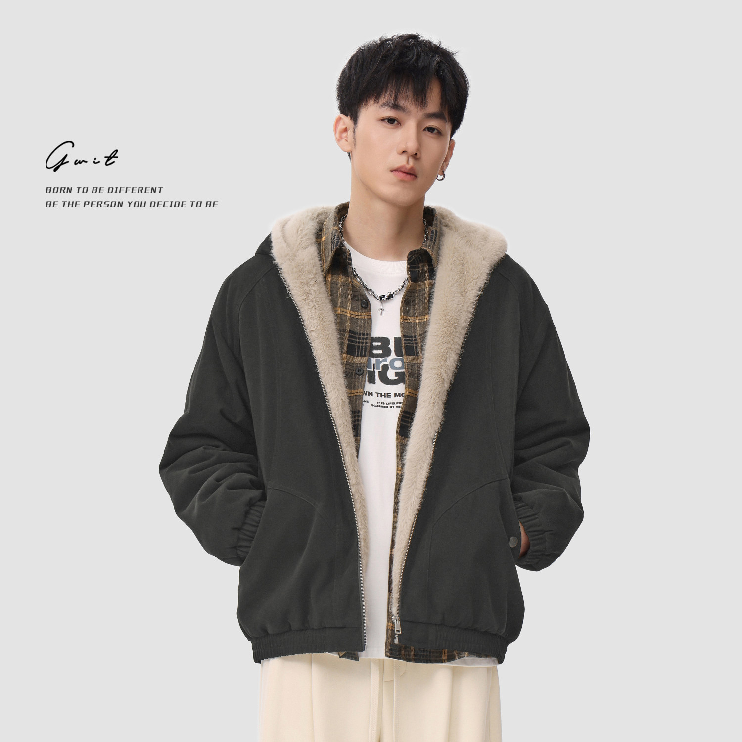 GWIT 美拉德Vintage加绒夹克冬季保暖棉服座山雕加厚连帽外套男