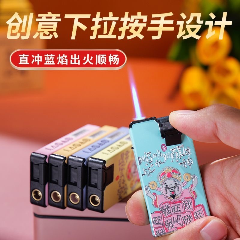 金属防风蓝焰直冲香味卡通彩印充气打火机防爆耐用商超批发火机