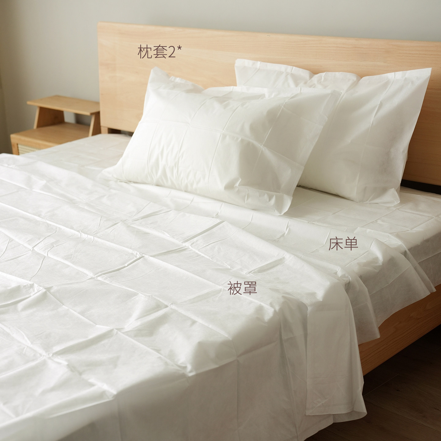 一次性床上四件套 床品床单被罩枕套被套 酒店出差旅游双人加厚