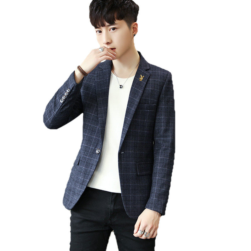 花花公子春秋季男士格子西服男青年韩版修身型西装潮休闲外套上衣