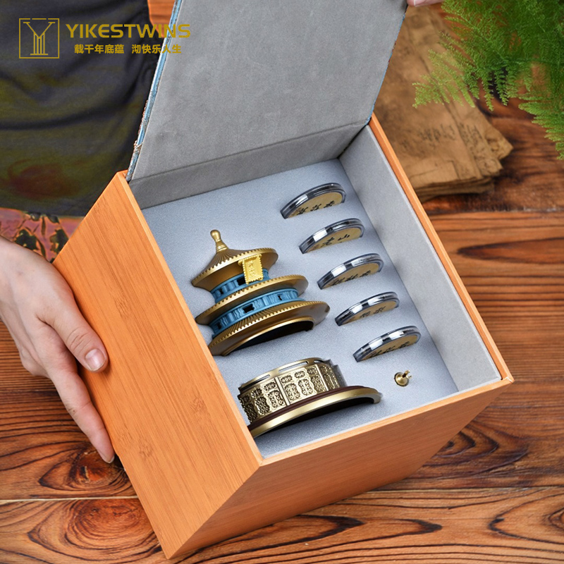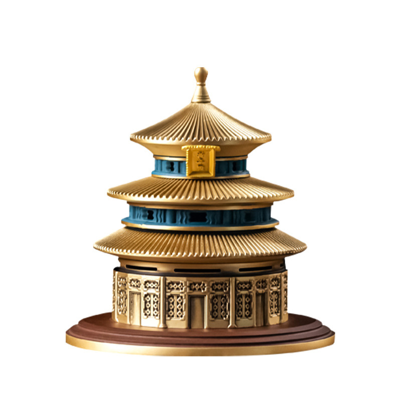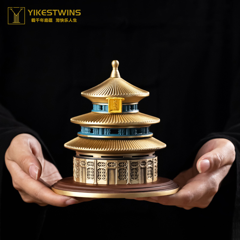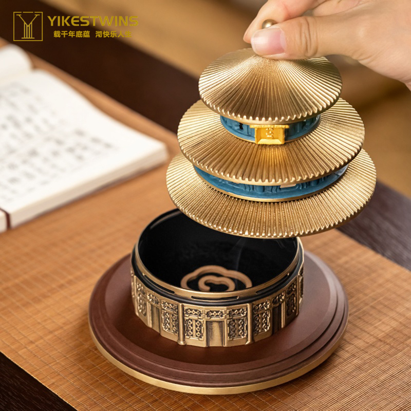 天坛香炉创意可拆式室内摆件黄铜盘香炉打香篆中式礼盒装镂空仿古