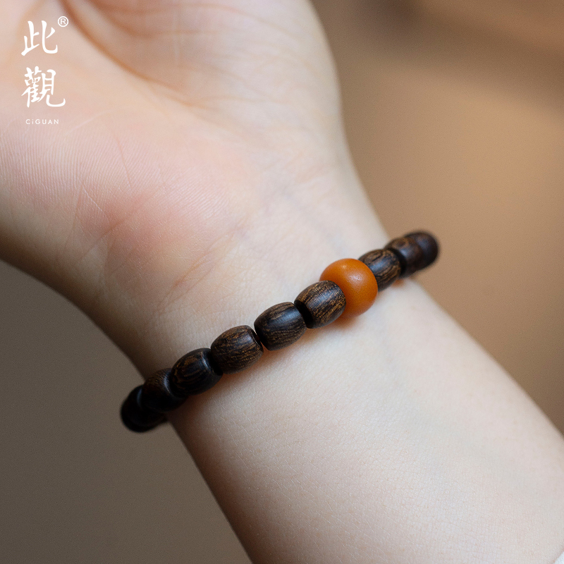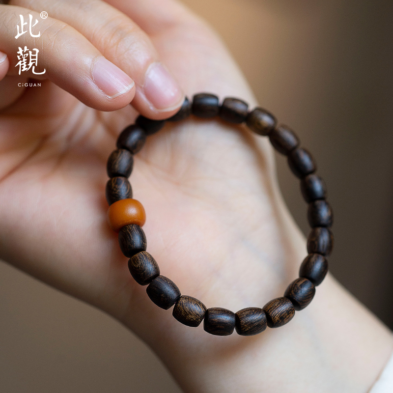 此观沉水级真品文莱老料单圈桶珠蜜蜡沉香手串男天然高端文玩手串