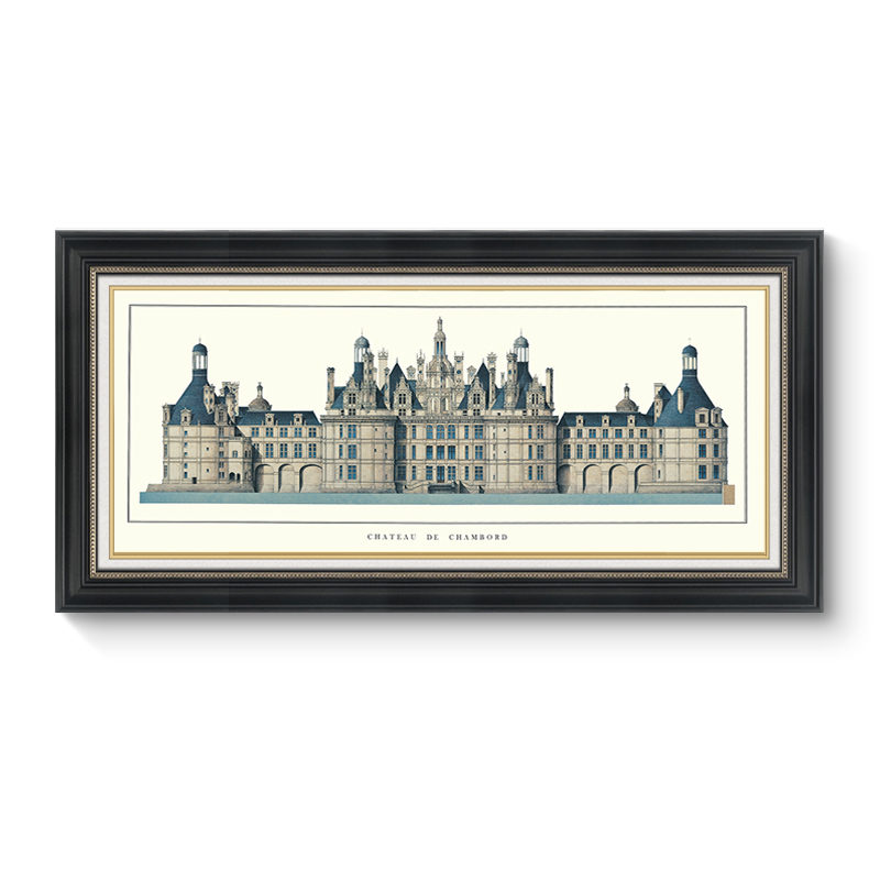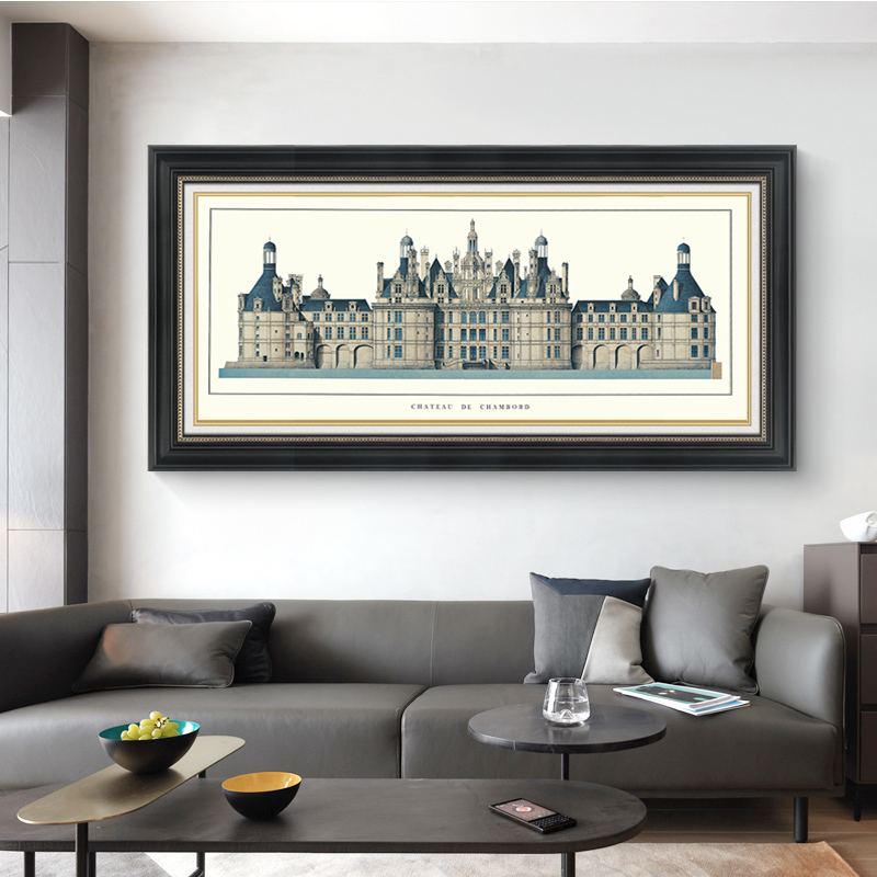 美式客厅装饰画横幅建筑欧式卧室背景墙挂画城堡餐厅书房壁画墙画