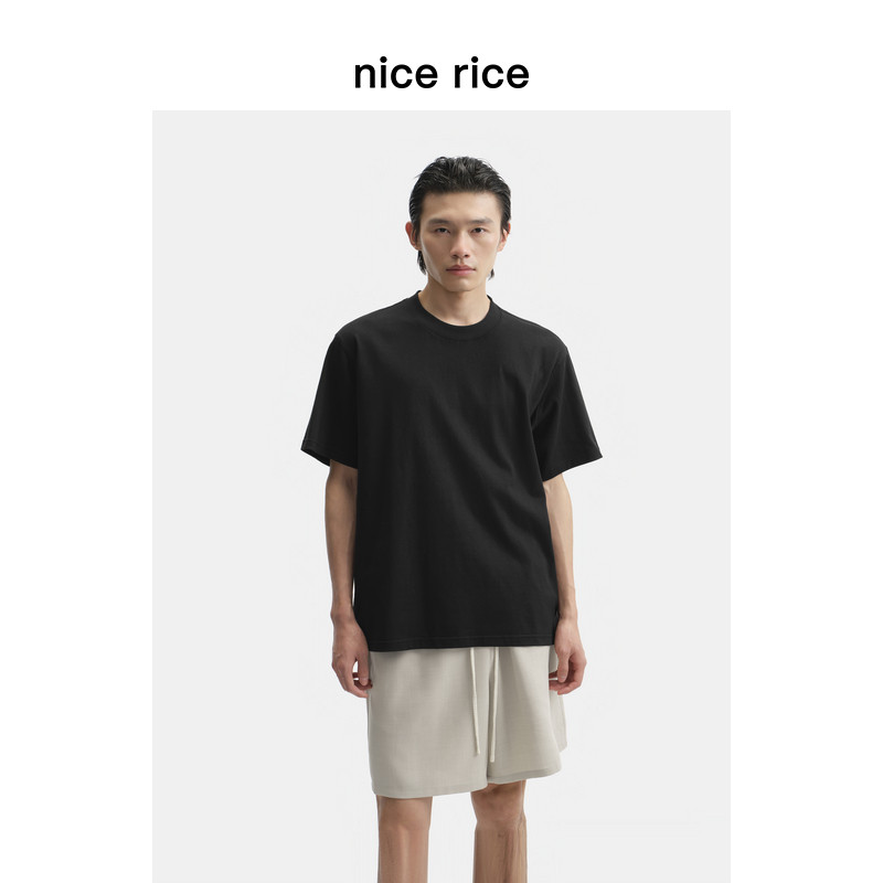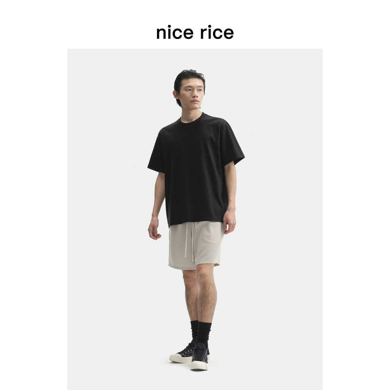 nice rice好饭 夏季仿麻肌理宽松撞色编织抽绳休闲短裤男NHX11077