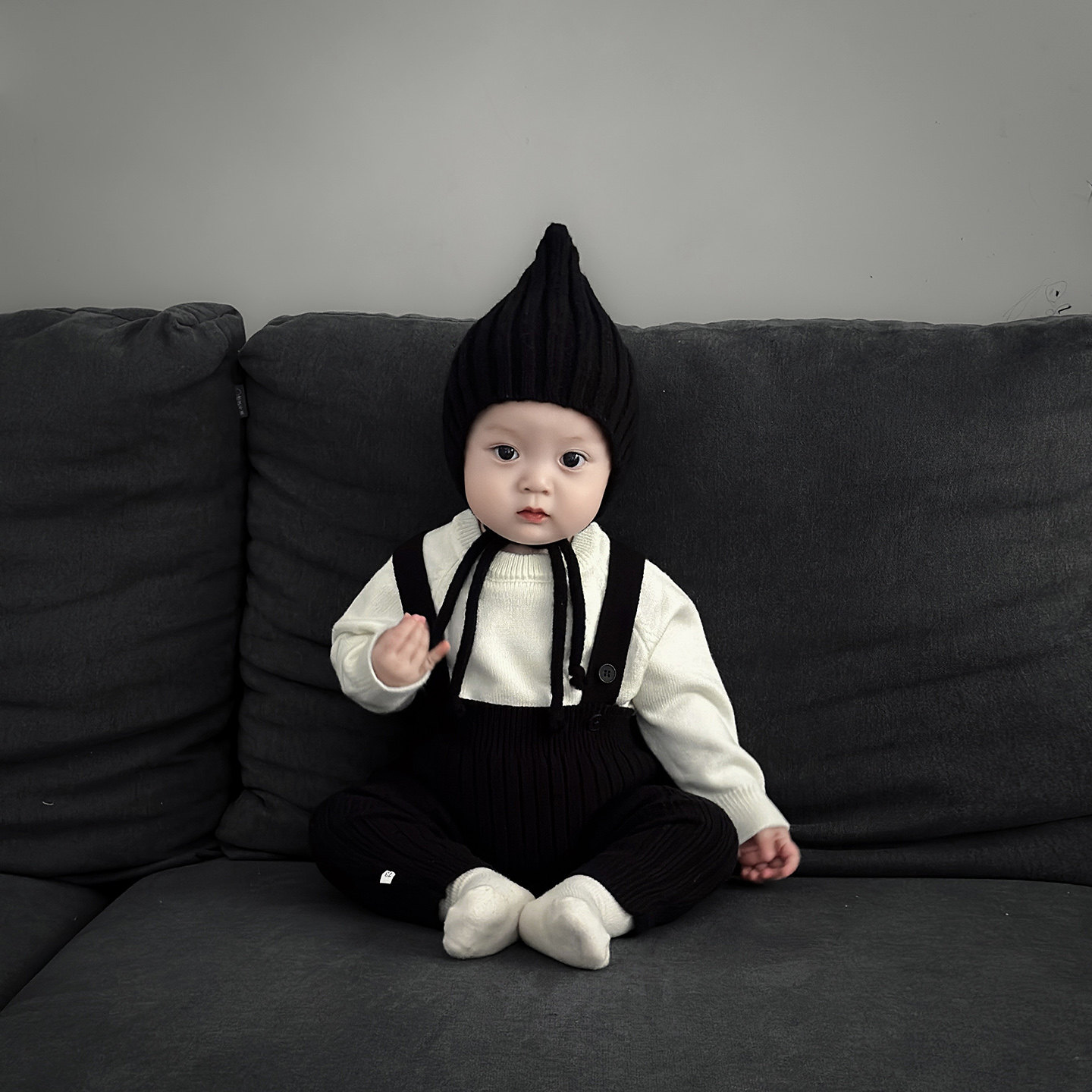 男宝宝春秋款韩版毛衣套装男童洋气打底针织衫婴幼儿百搭背带裤潮