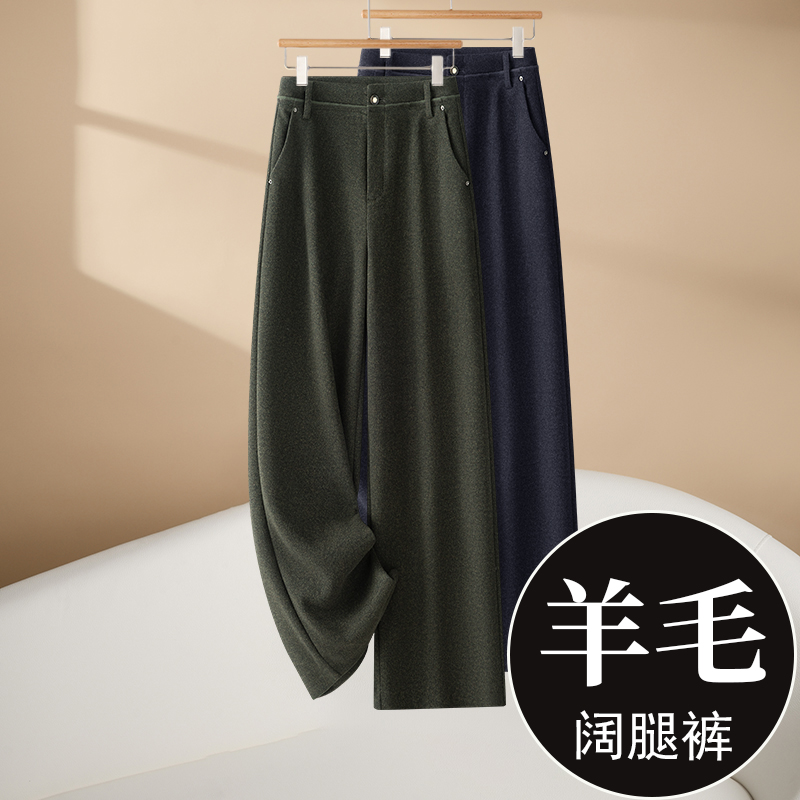 羊毛呢阔腿裤女秋冬新款时尚韩系垂感高腰显高显瘦直筒窄版休闲裤