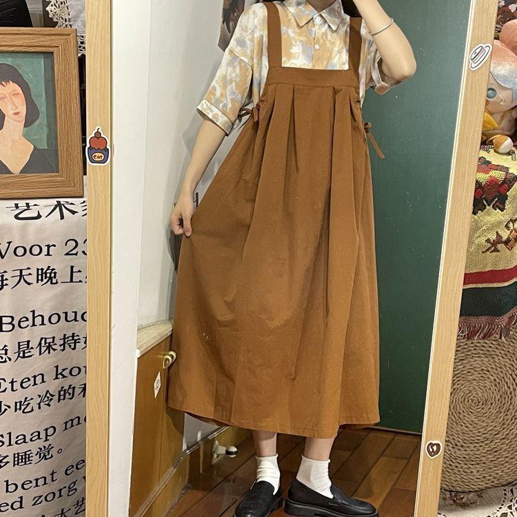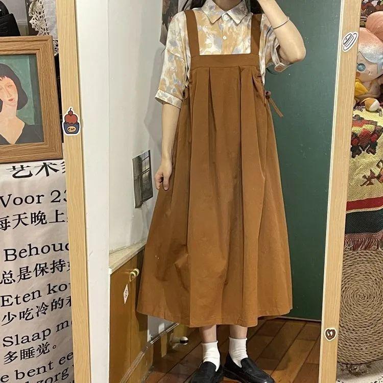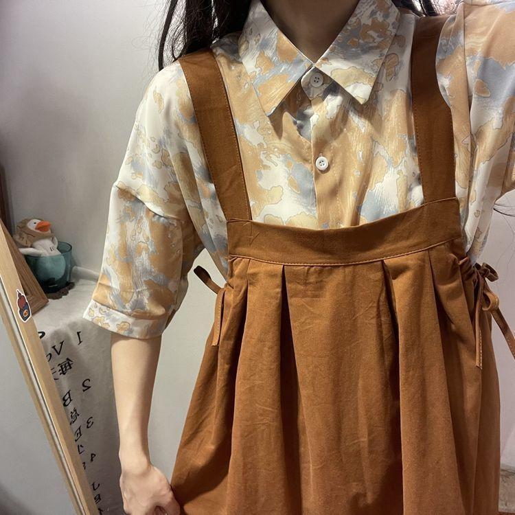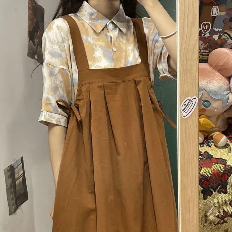 胖mm300斤宽松特大码复古学院风短袖衬衫背带连衣裙女ins220显瘦