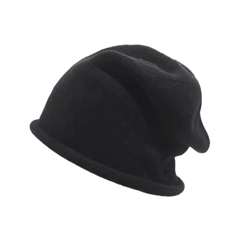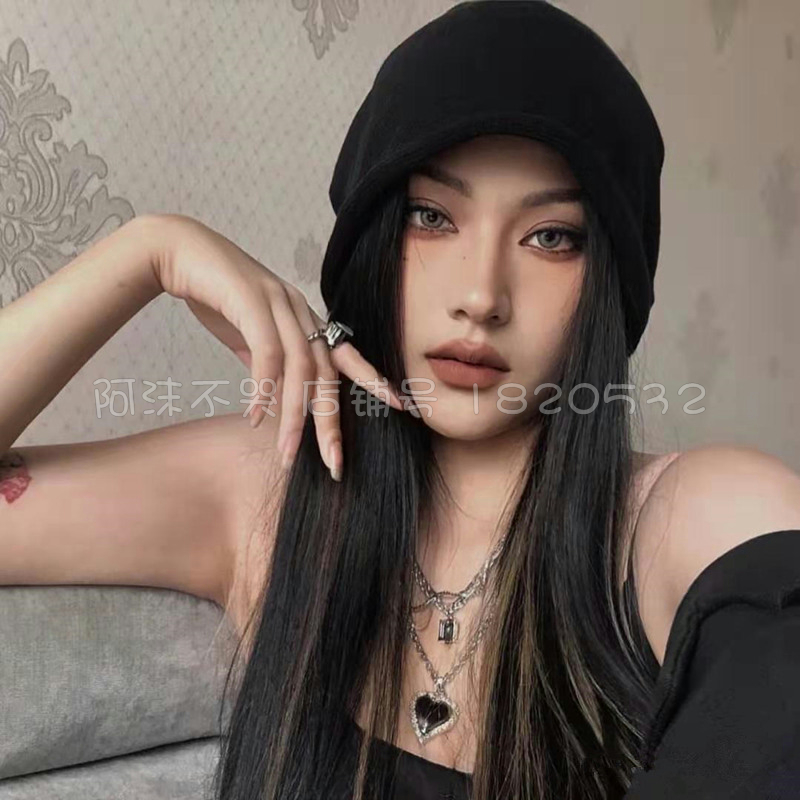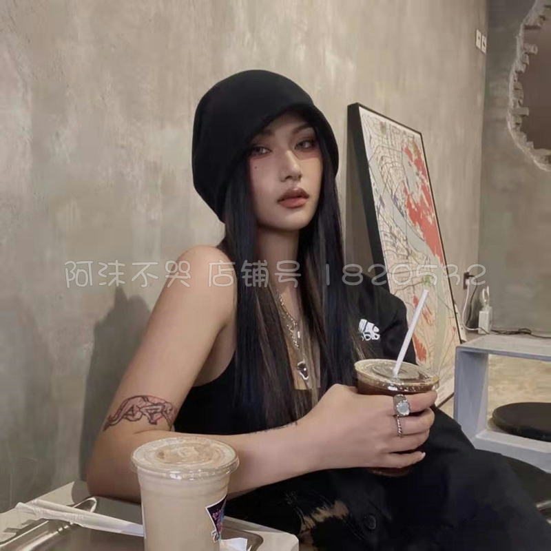黑色酷潮显脸小卷边堆堆帽女秋冬网红炸街大头围宽松毛线针织冷帽