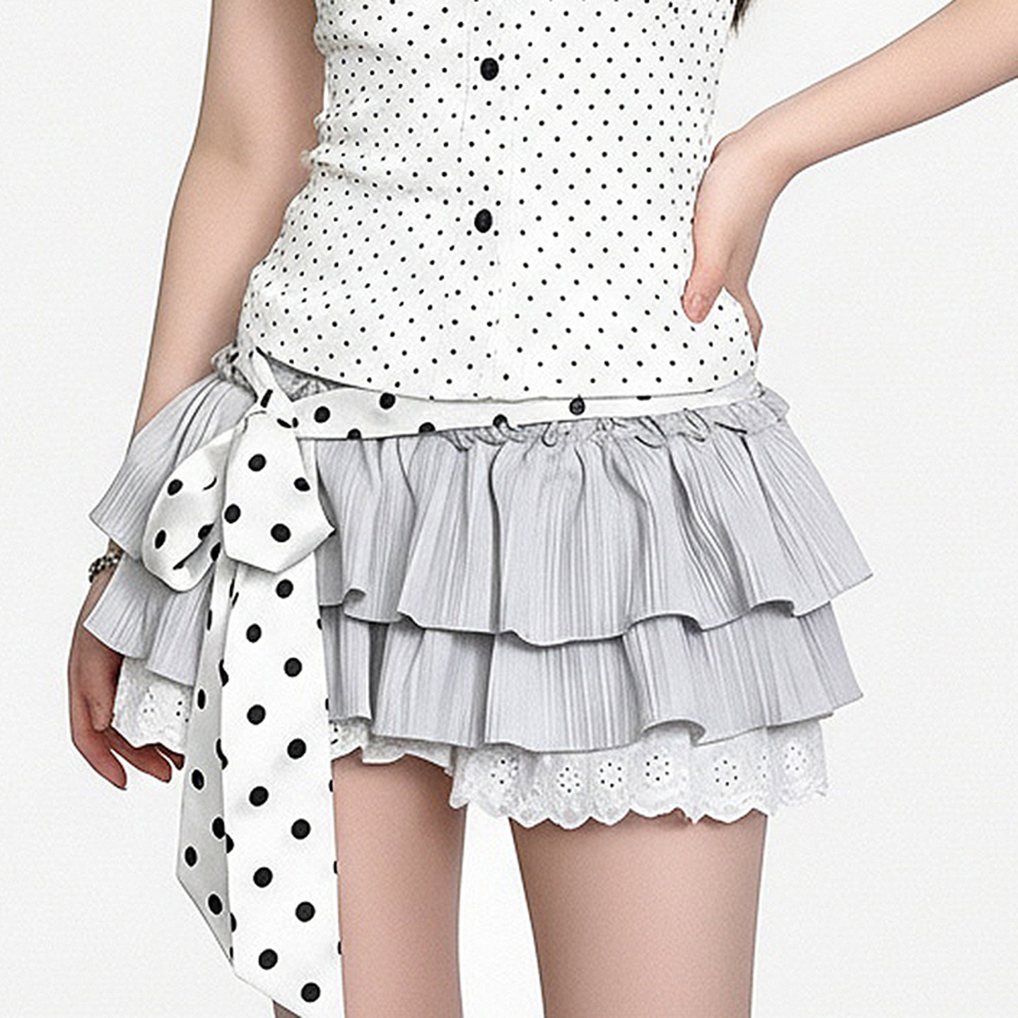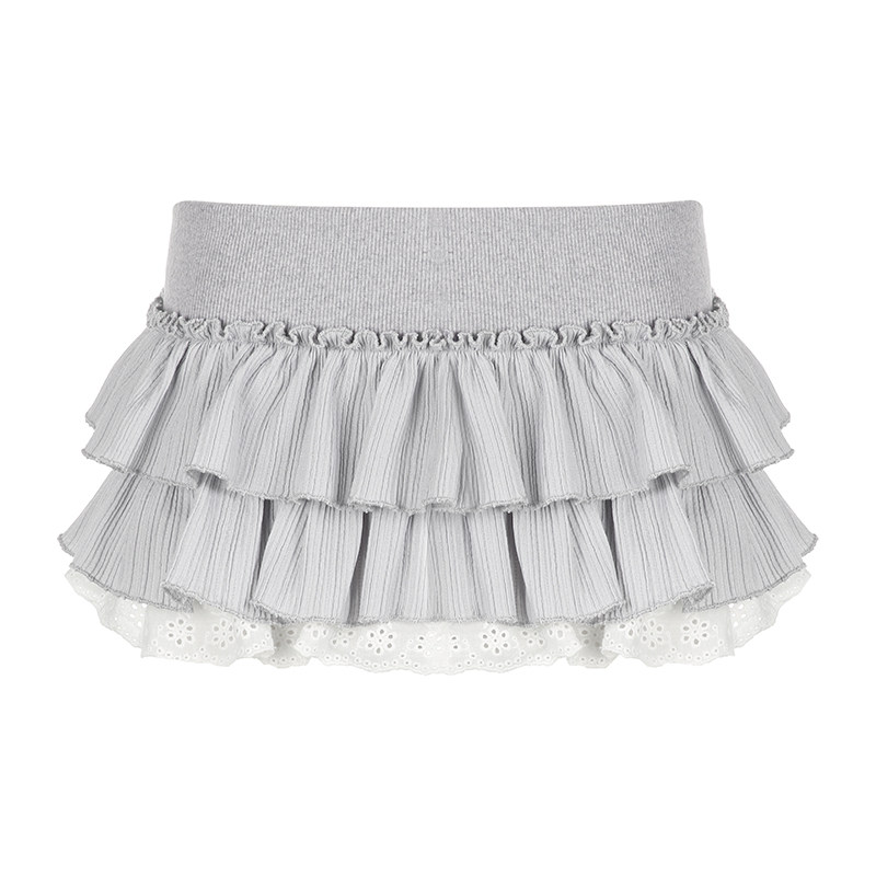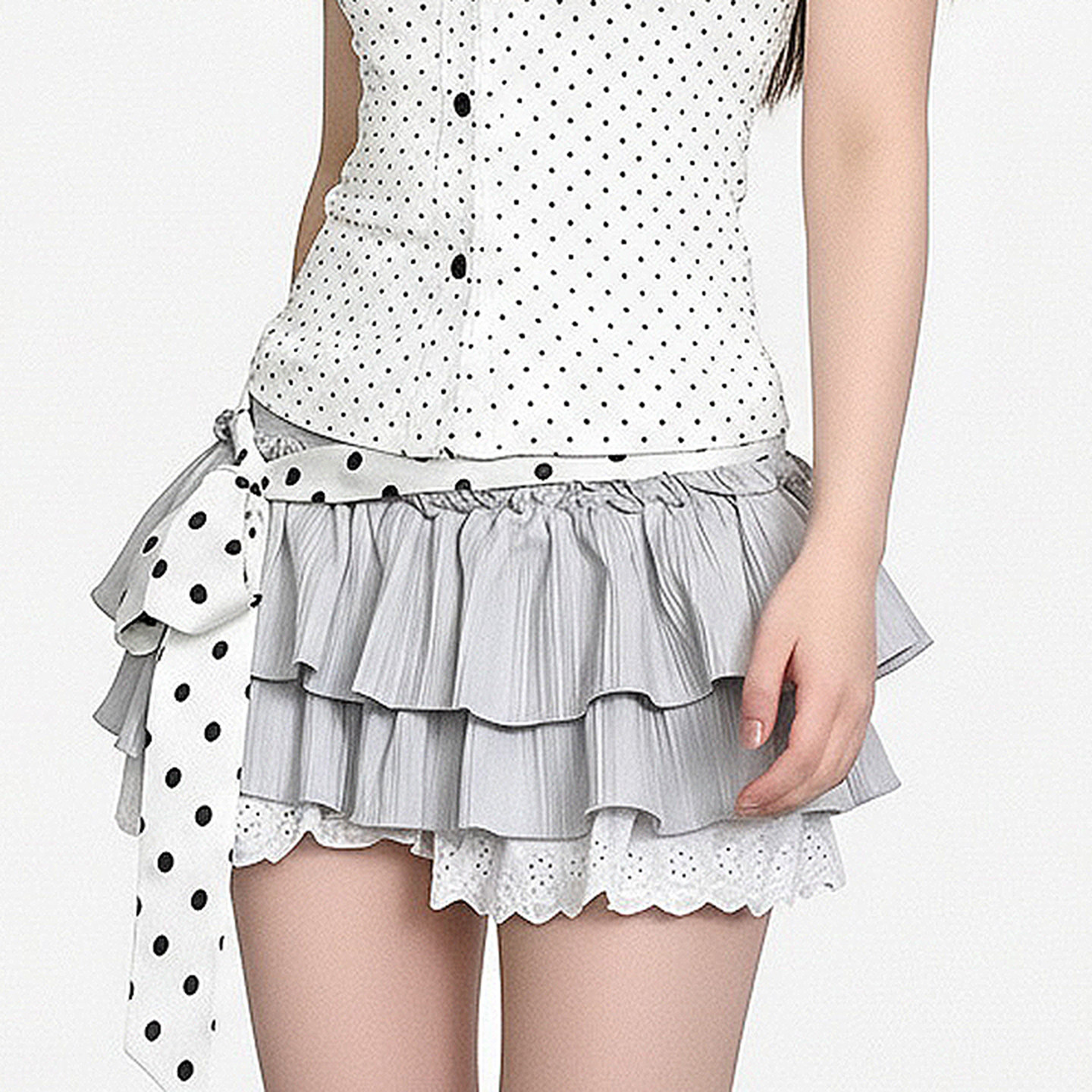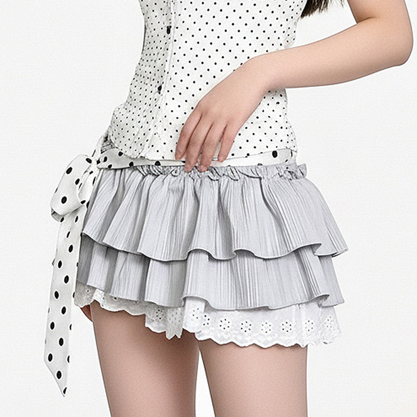 SEEYOULATER 法式芭蕾风撞色蕾丝拼接蛋糕裙基础百搭少女感半身裙