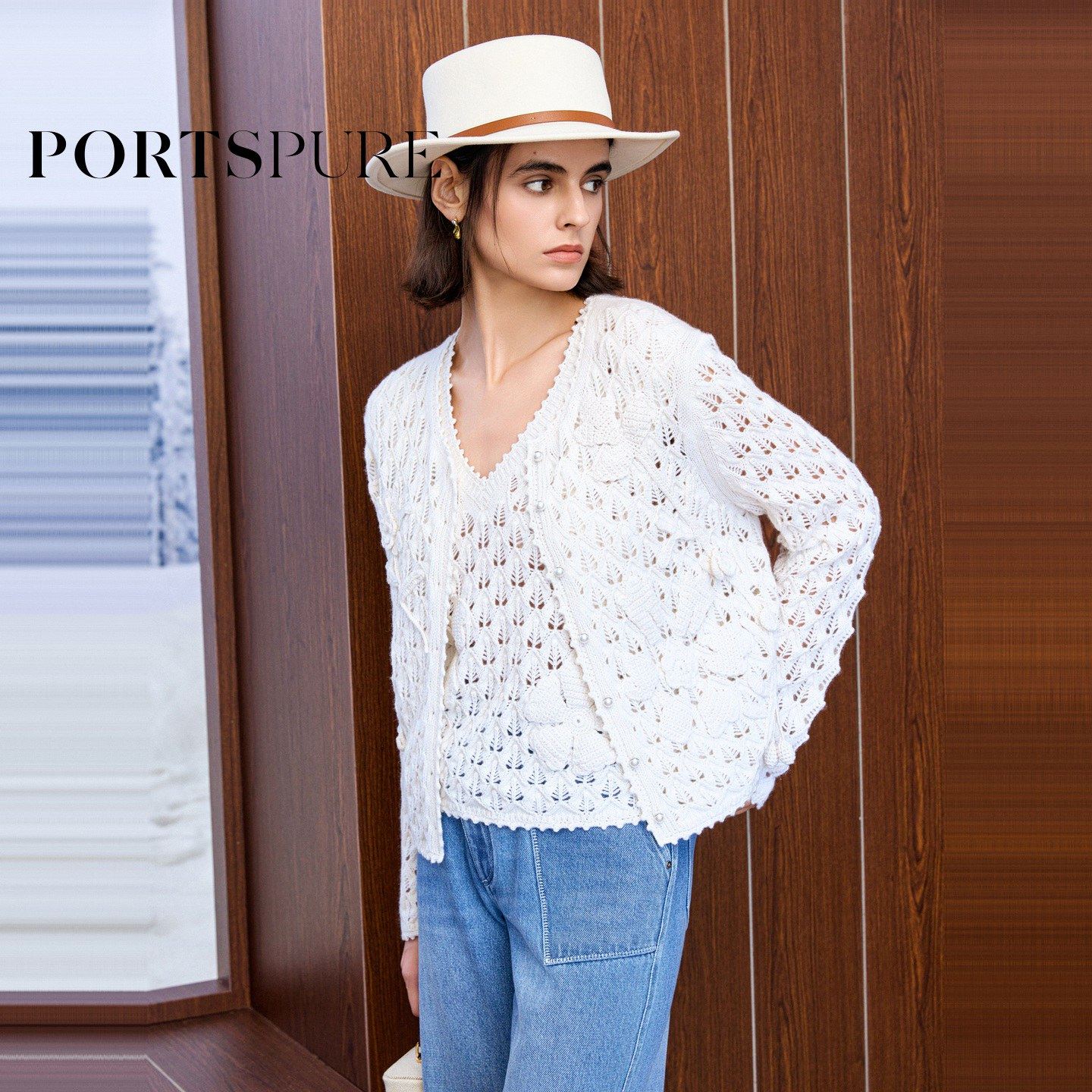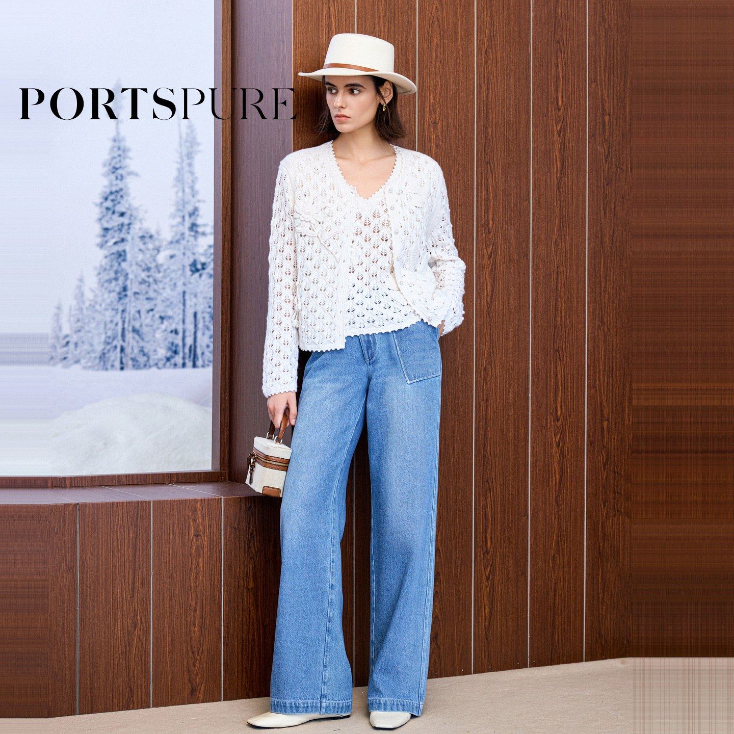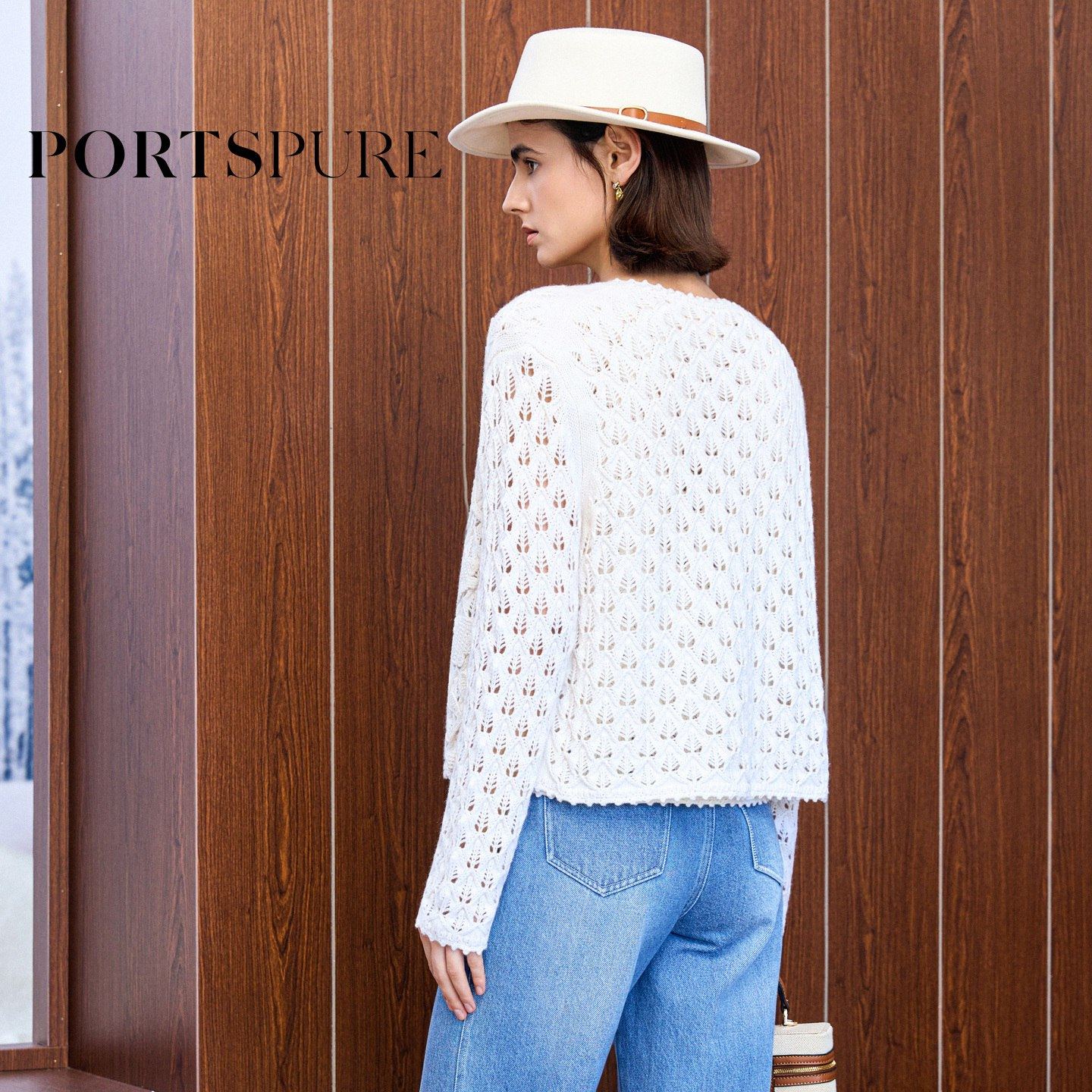 商场同款 宝姿PORTSPURE女装2025秋冬新品浪漫镂空度假针织开衫