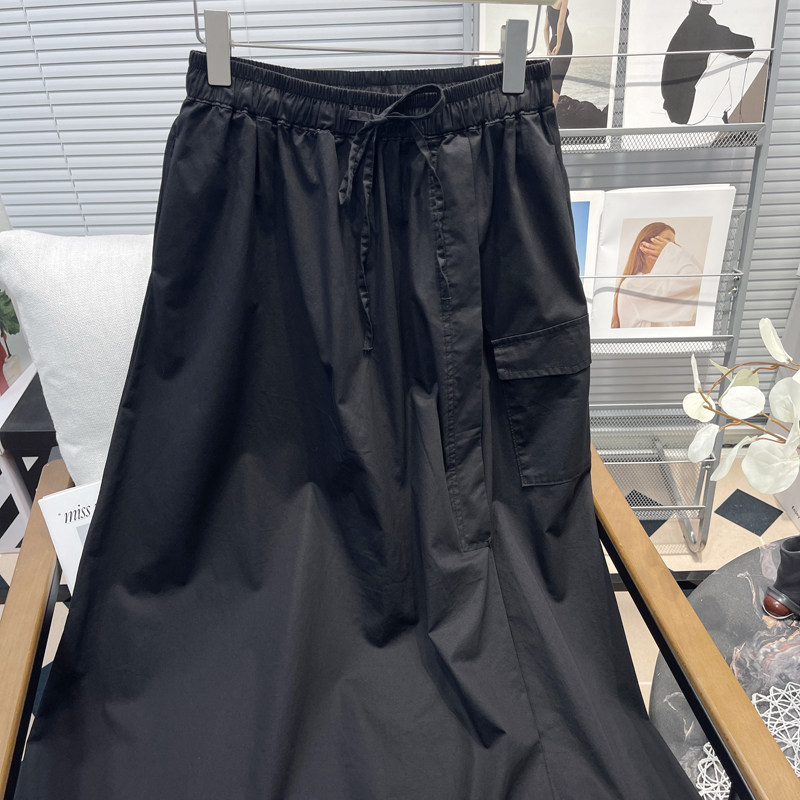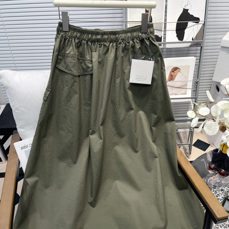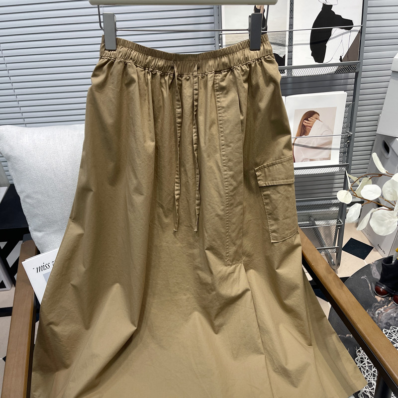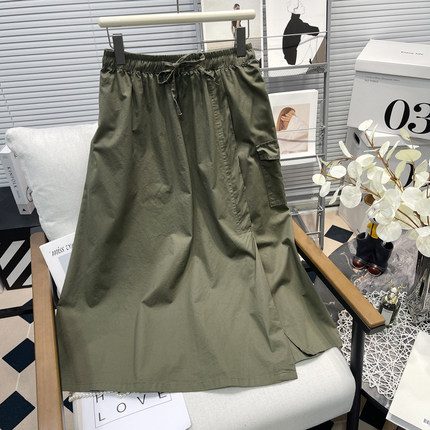 胡子叔大码工装半身裙夏季新款胖mm系带松紧腰a字大摆中长款裙子