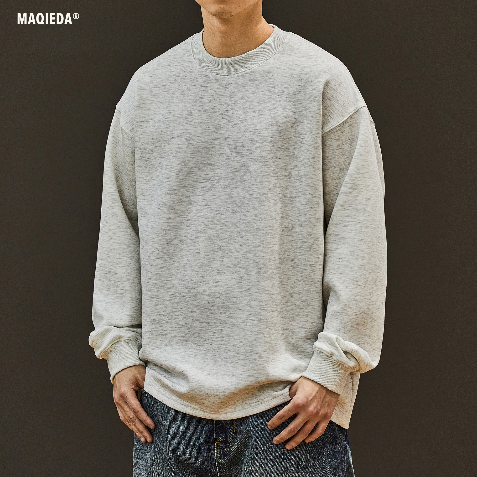 马切达重磅精梳棉纯色百搭长袖男生圆领休闲打底衫秋季男士T恤ins