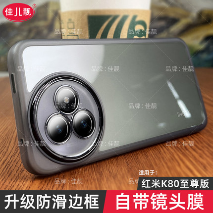 适用于红米k80至尊版自带镜头膜手机壳小米k80pro防滑新款k80保护套透明硅胶redmi镜头全包防摔男女软5G情侣
