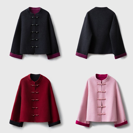 一丝牵羊绒羊毛双面呢大衣女新中式国风盘扣毛呢外套秋冬2025新款