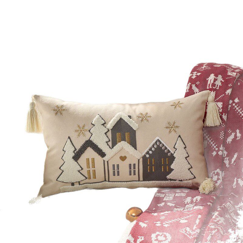 刺绣靠垫套卡通飘窗榻榻米靠垫沙发客厅装饰新款圣诞房子抱枕