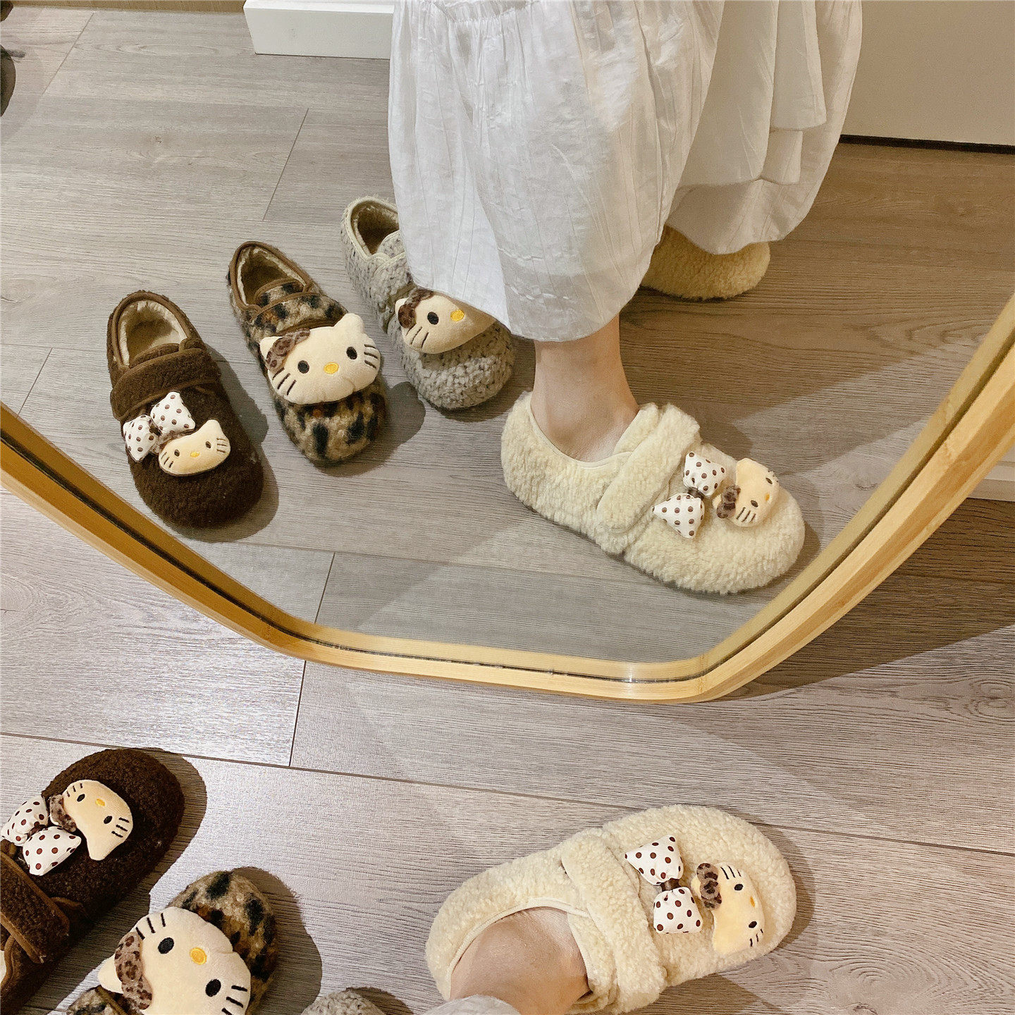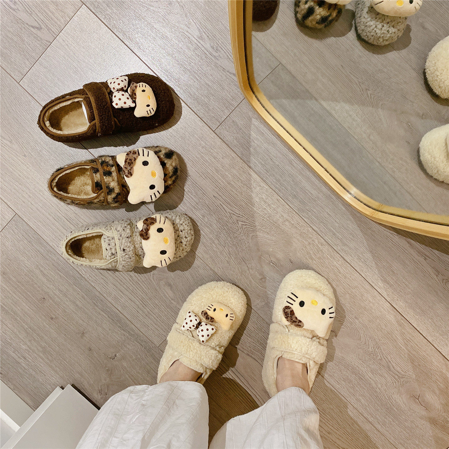 卡通毛毛鞋魔术贴加绒保暖单鞋2025冬季新款韩版内增高棉鞋豆豆鞋