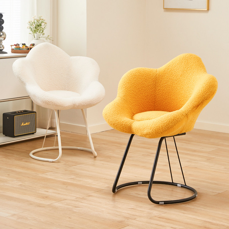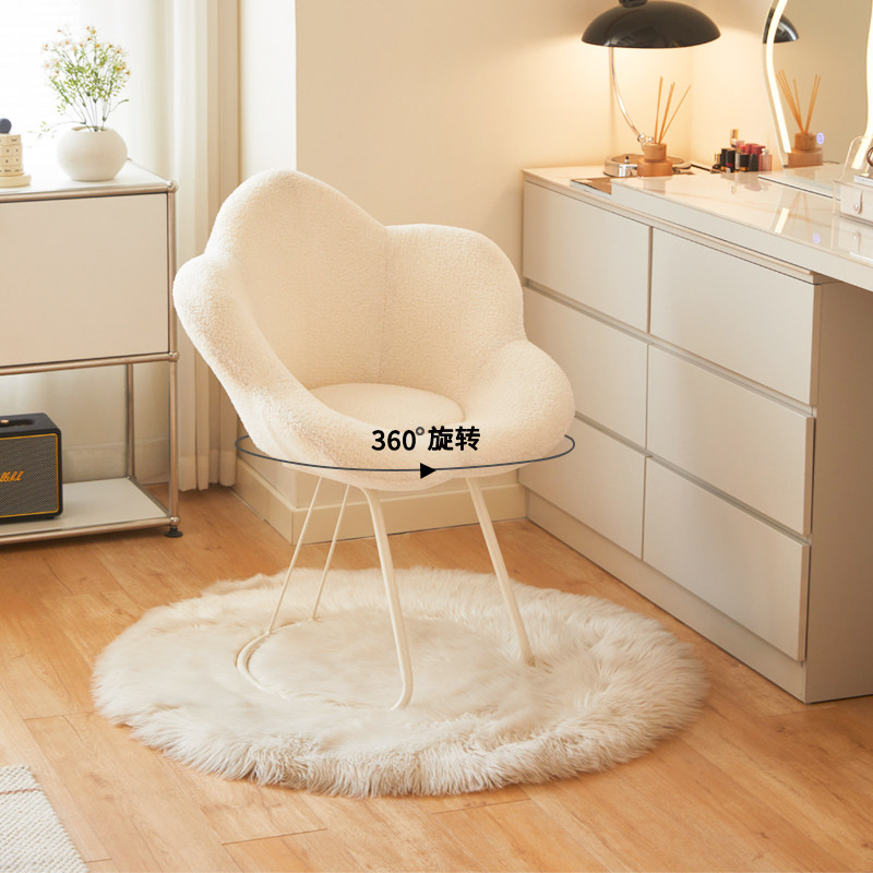 化妆椅女生卧室舒适布艺羊羔绒靠背花瓣椅美甲椅网红奶油风梳妆椅