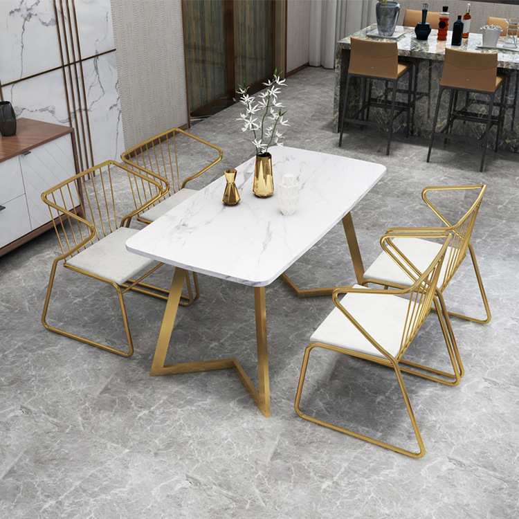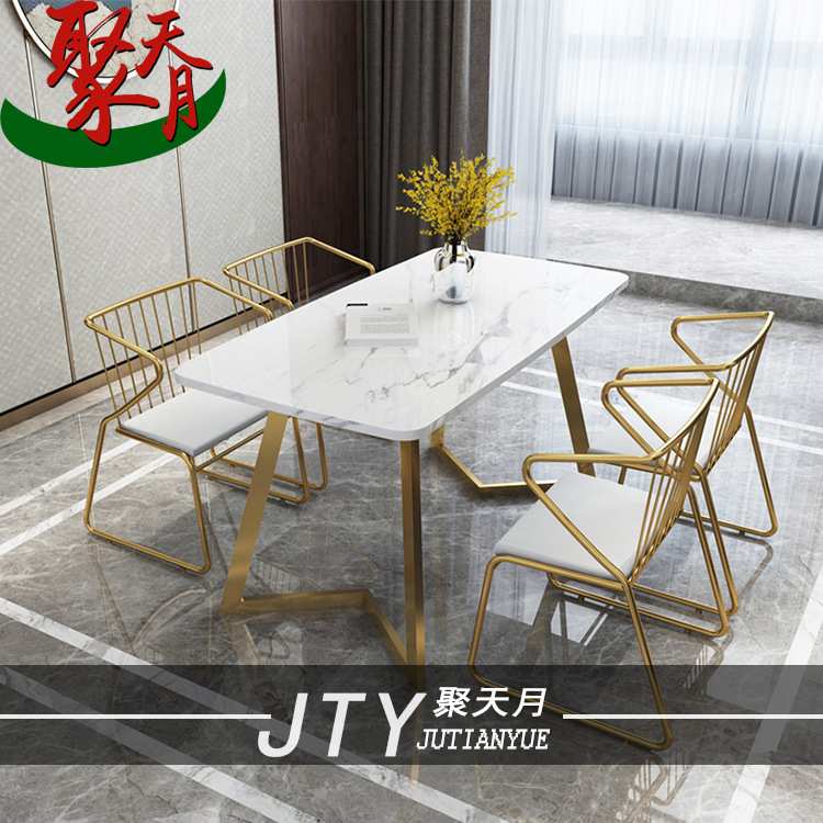 北欧大理石成套餐桌椅 客厅家用金色饭桌简约餐桌椅组合餐厅家具
