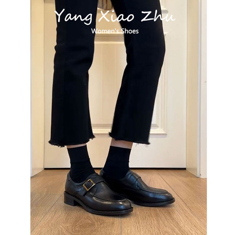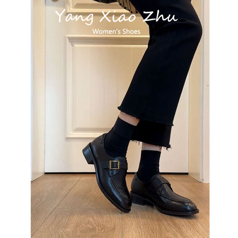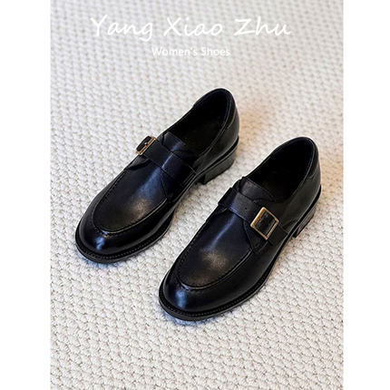 羊皮版~英伦风粗跟小皮鞋女2025