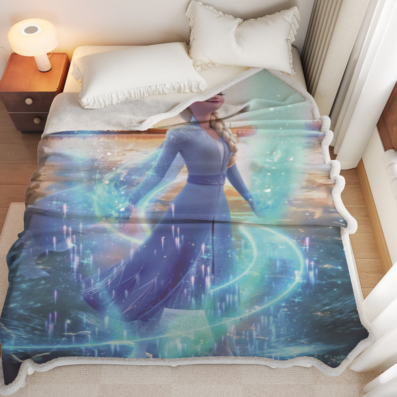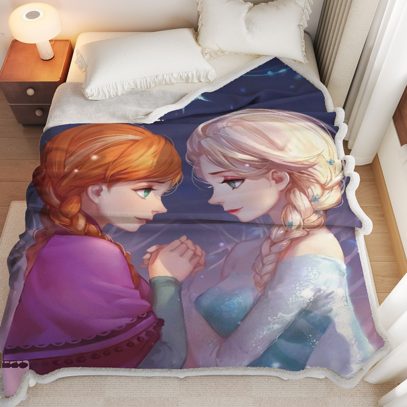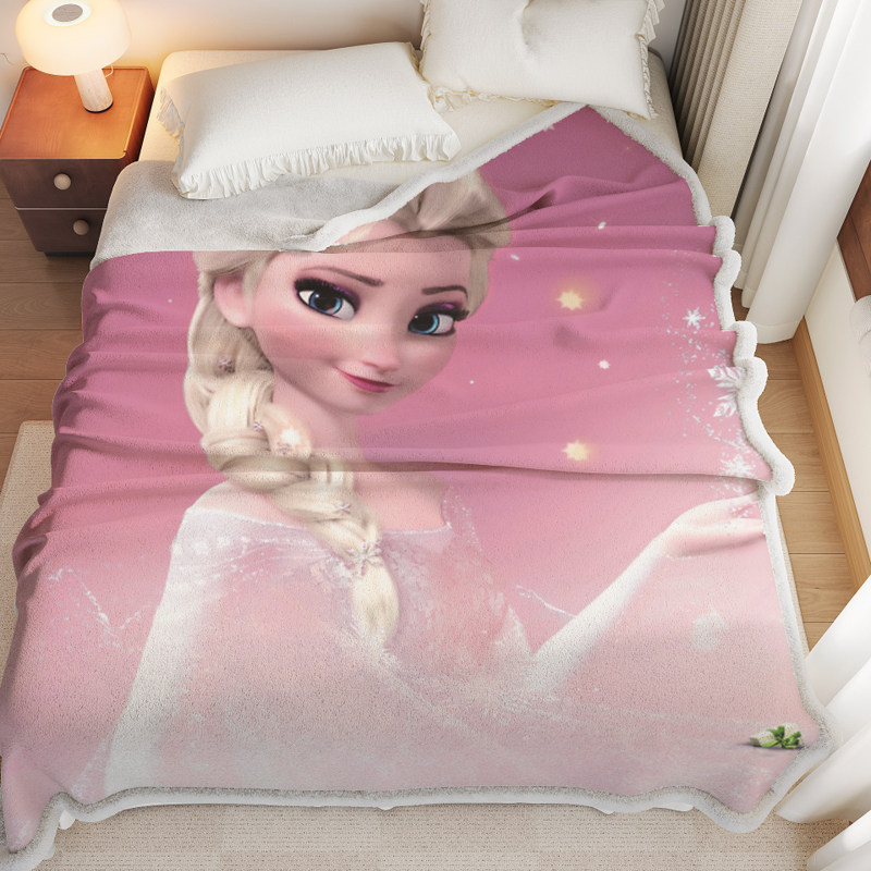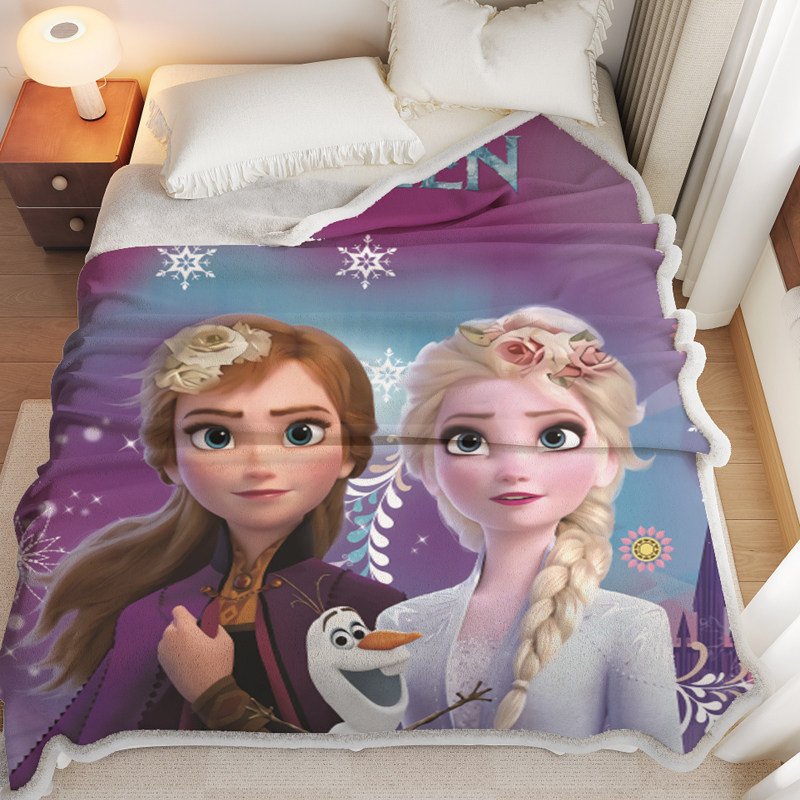 迪士尼冰雪奇缘艾莎公主法莱绒毛毯学生宿舍儿童午睡盖毯双层保暖
