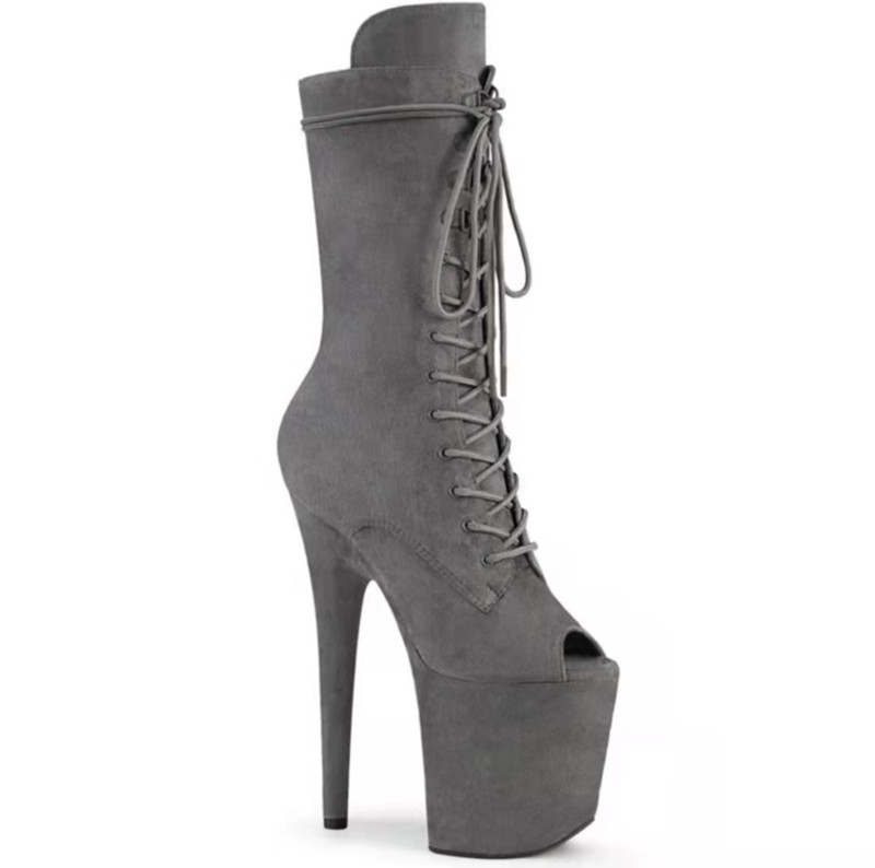 20cm超高跟鞋细跟恨天高防水台杏色钢管舞鞋短靴性感欧美绒面靴子