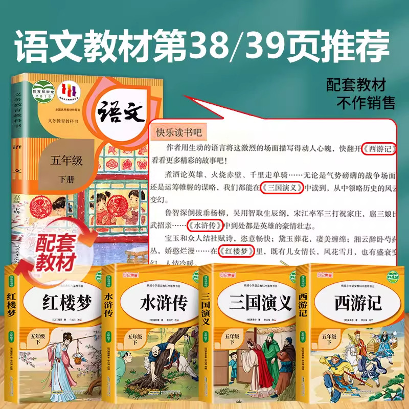 四大名著全套原著正版小学生版 五年级下册必读的课外书 五下快乐读书吧老师推荐西游记三国演义水浒传青少年版小学生青少年版本