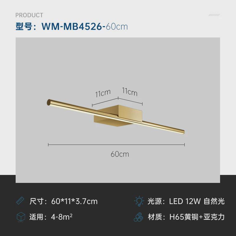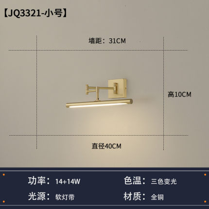代北欧轻奢浴室卫生间全铜镜前灯美式极简复古旋转壁画镜前灯