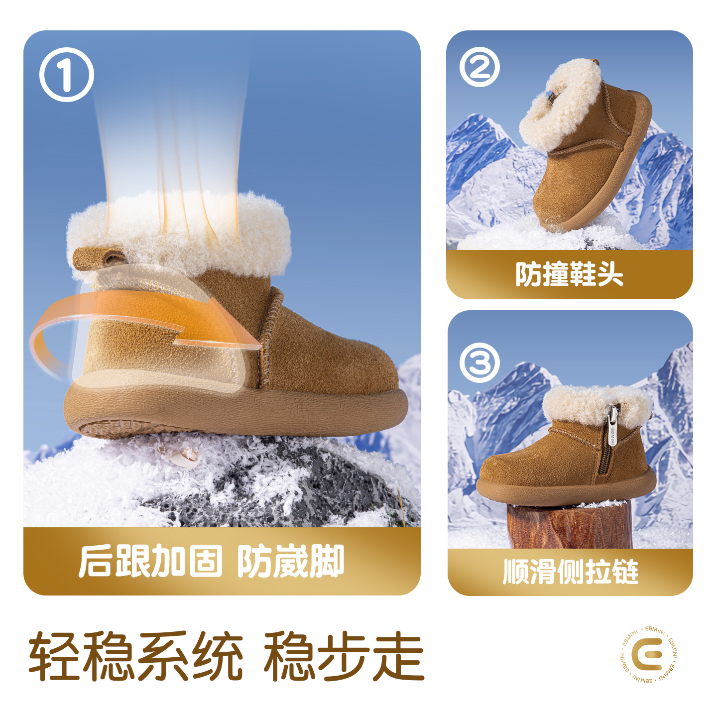 英贝米尼儿童学步鞋软底休闲加绒加厚短靴女童防滑保暖舒适男童鞋