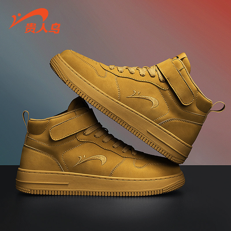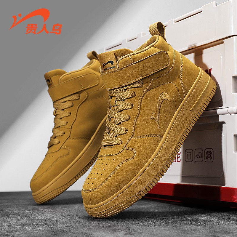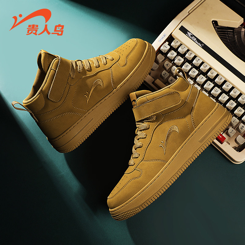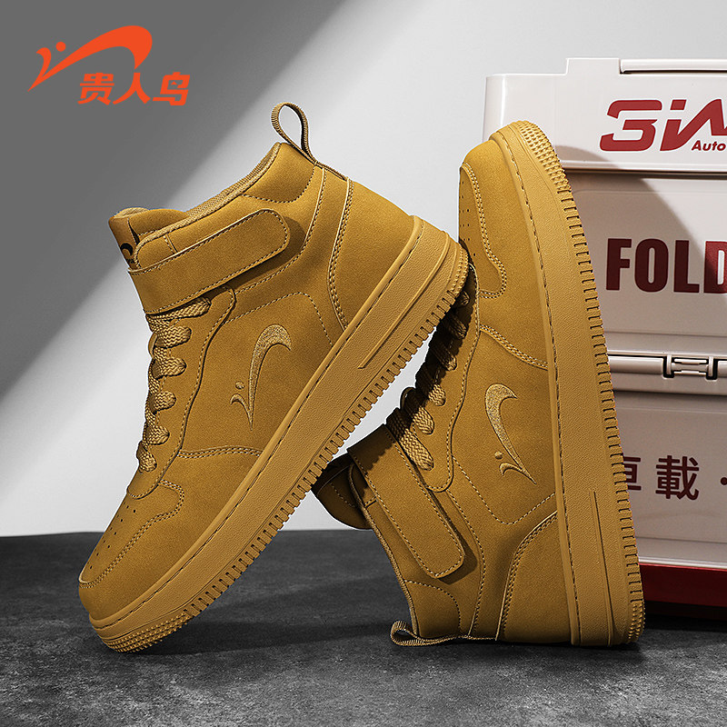 贵人鸟高帮鞋男夏季新款小麦色复古休闲鞋男款减震厚底运动鞋板鞋