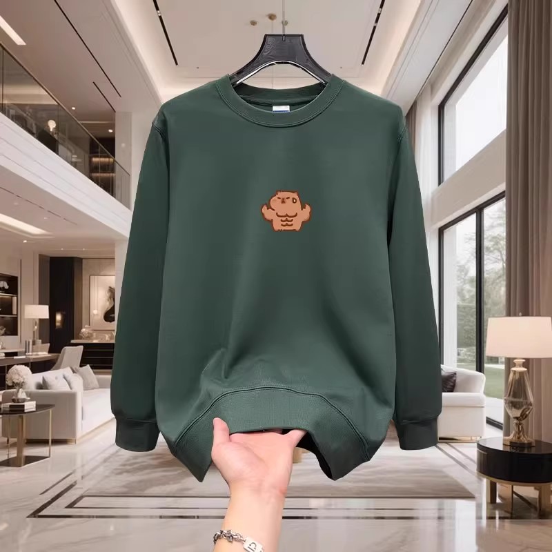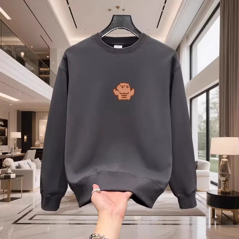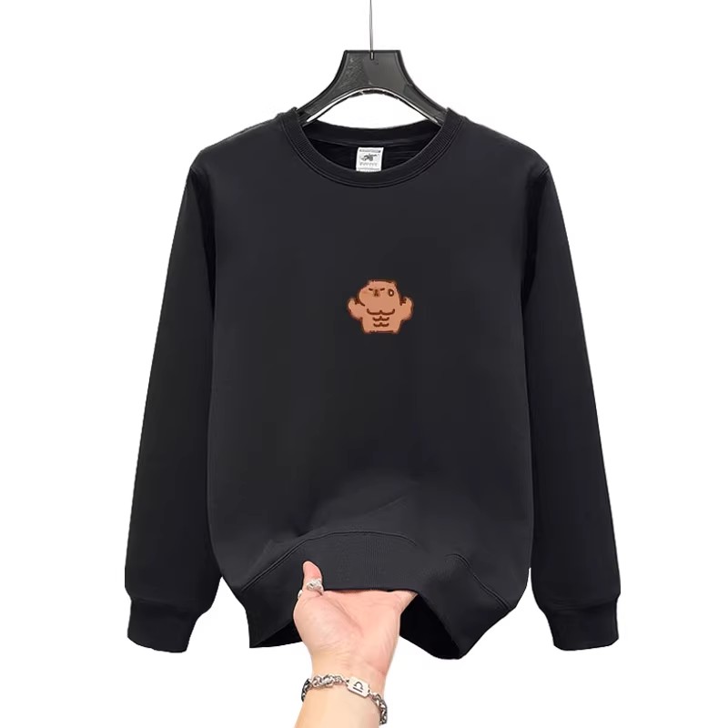 香港正品潮牌秋冬卡通健身小猫打底衫男女款纯棉宽松加绒圆领卫衣