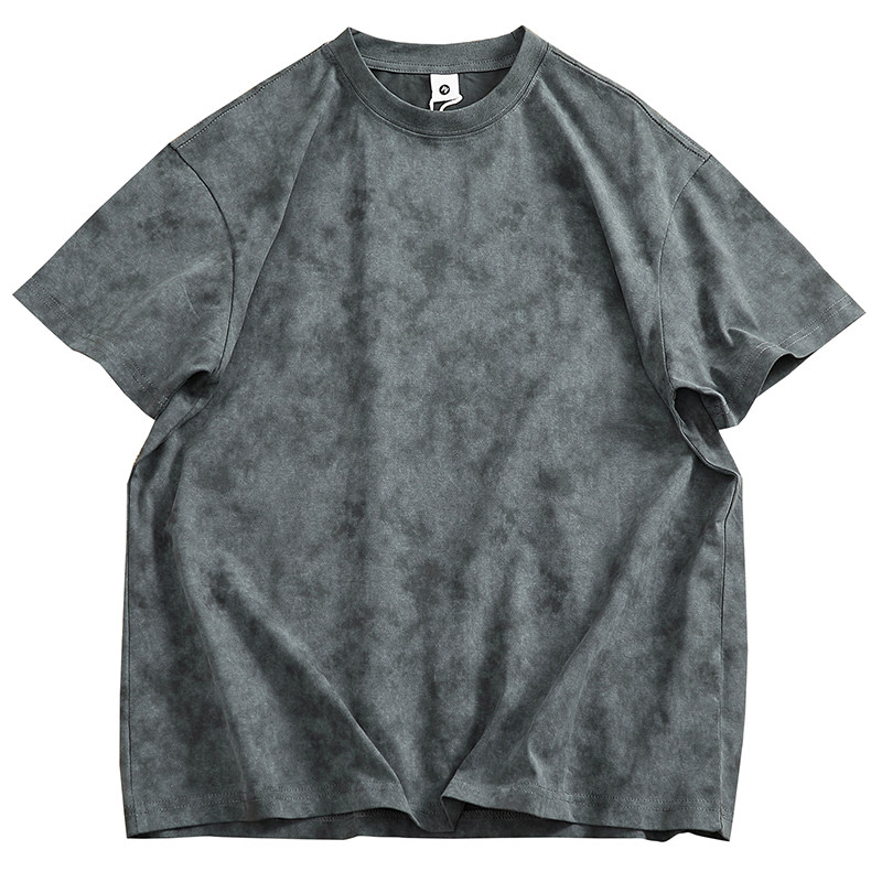 特色扎染工艺美式水洗做旧半袖男高街潮夏季纯棉重磅圆领休闲T恤