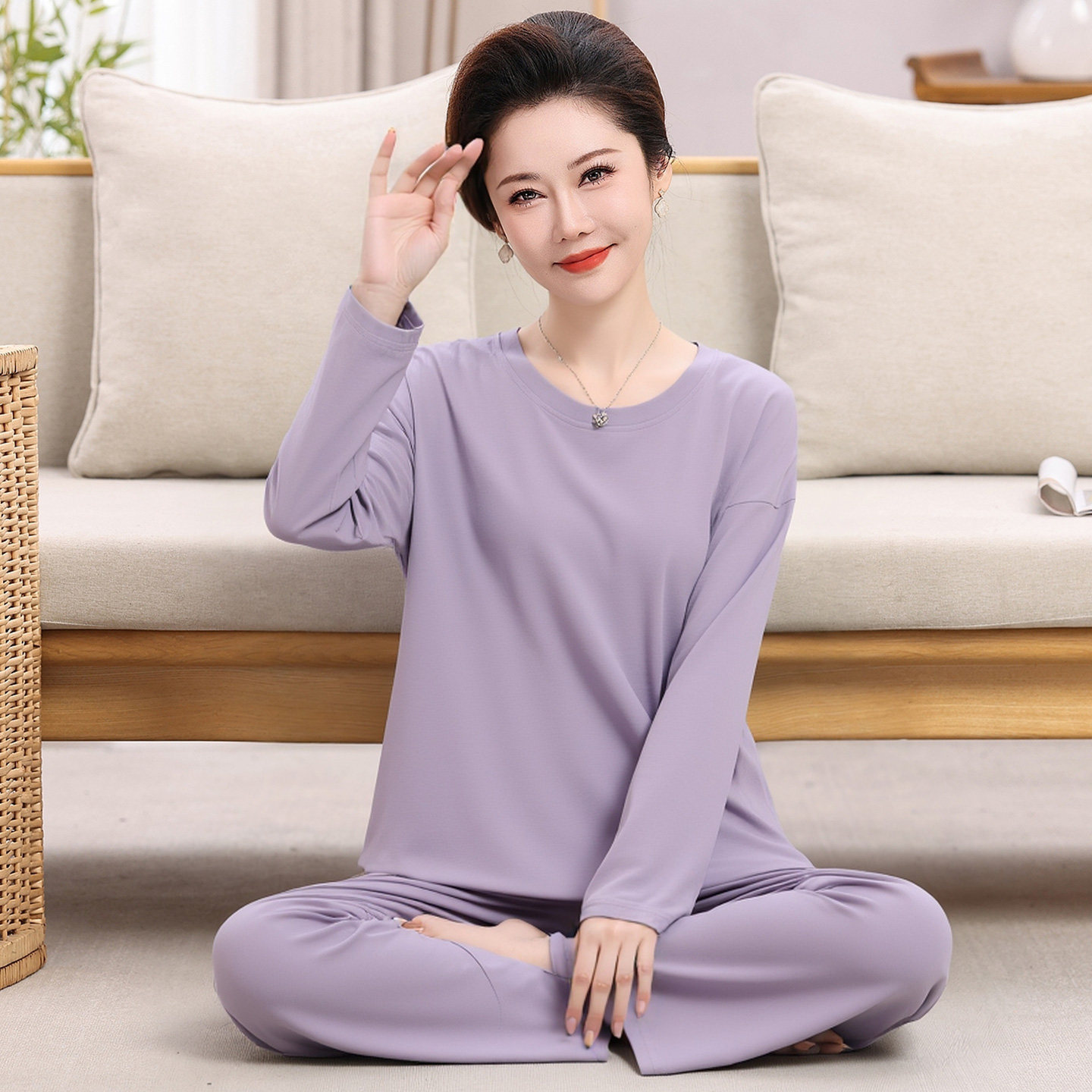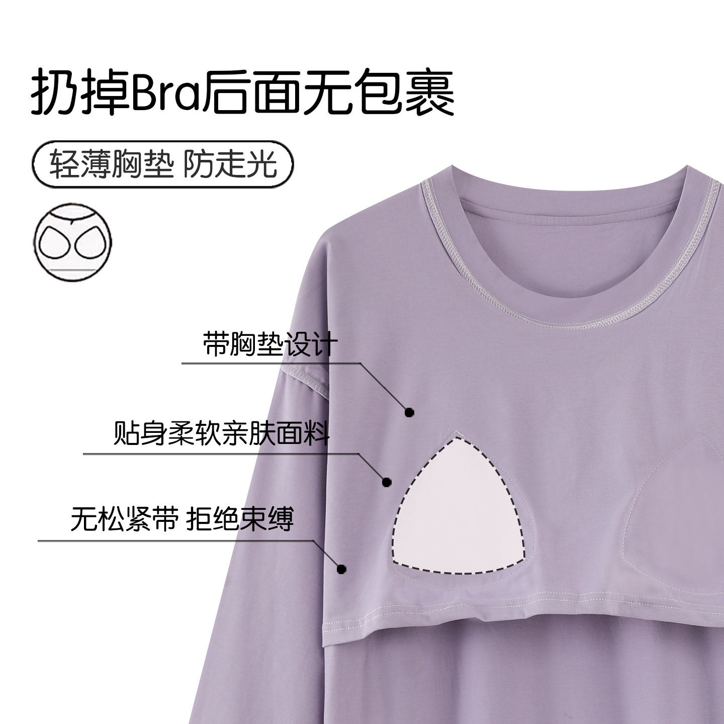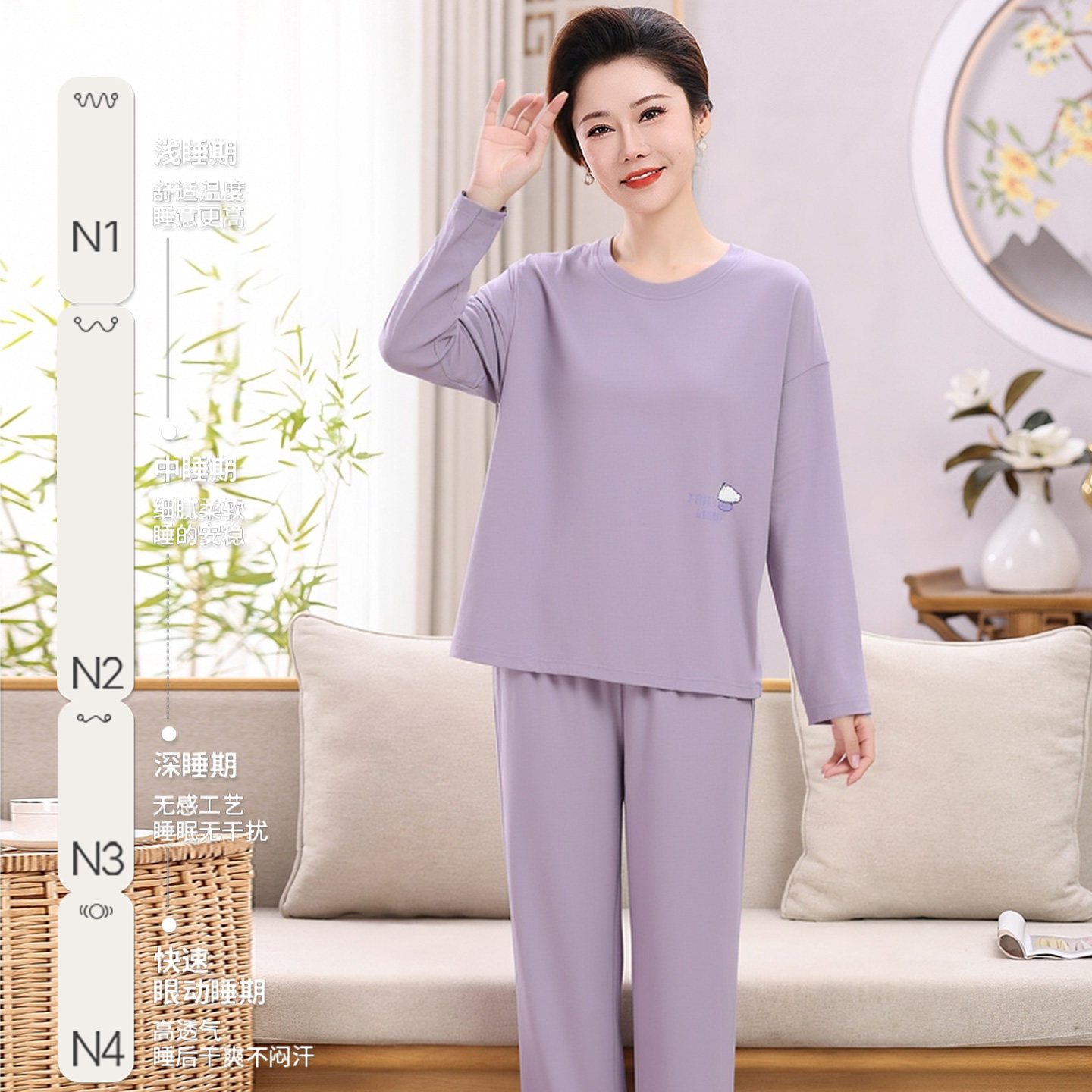 芬腾可安长袖睡衣女款2026新款秋春带胸垫中老年妈妈大码家居套装