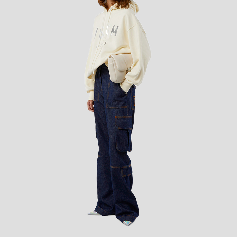 【博主同款】MSGM女士撞色落肩纯棉连帽长袖白色卫衣上衣时尚米色