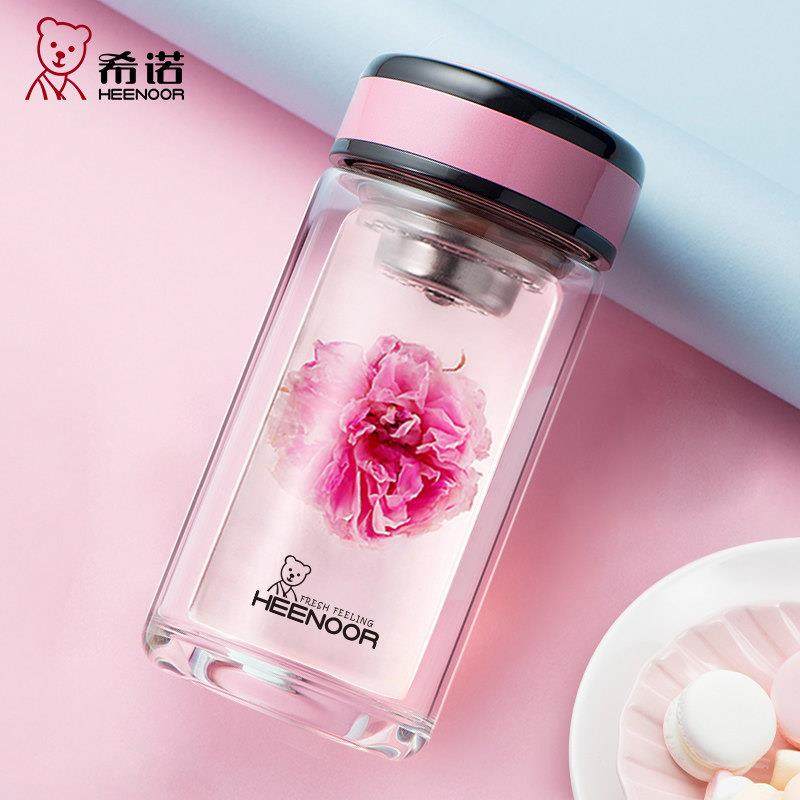 希诺女士双层玻璃杯 高档精致高颜值水杯 办公室好看的隔热泡茶杯