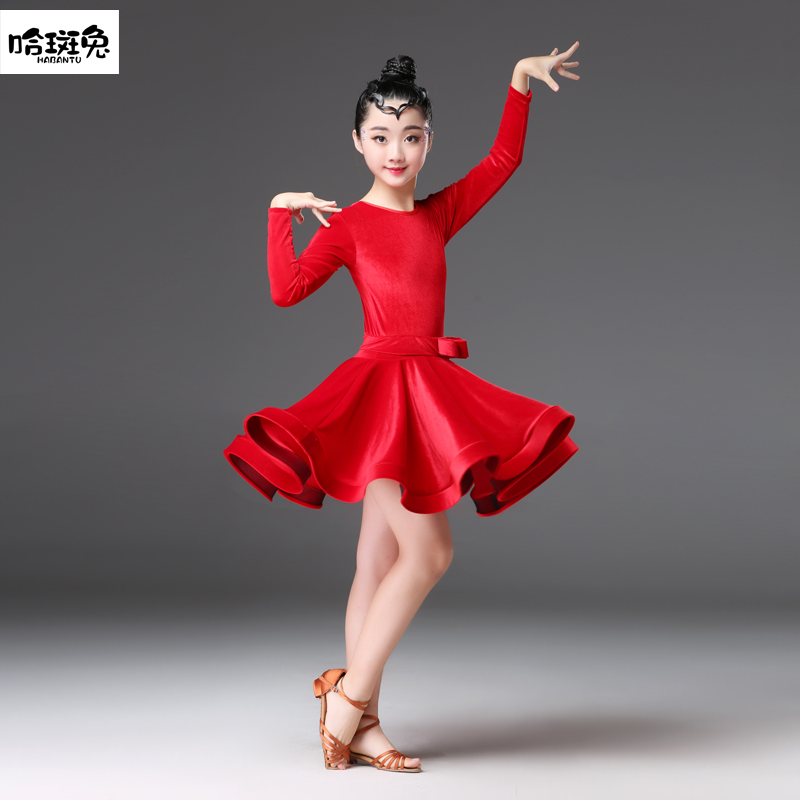 少儿童拉丁舞服装女童练功服比赛舞蹈裙专业表演出女孩秋冬季新款