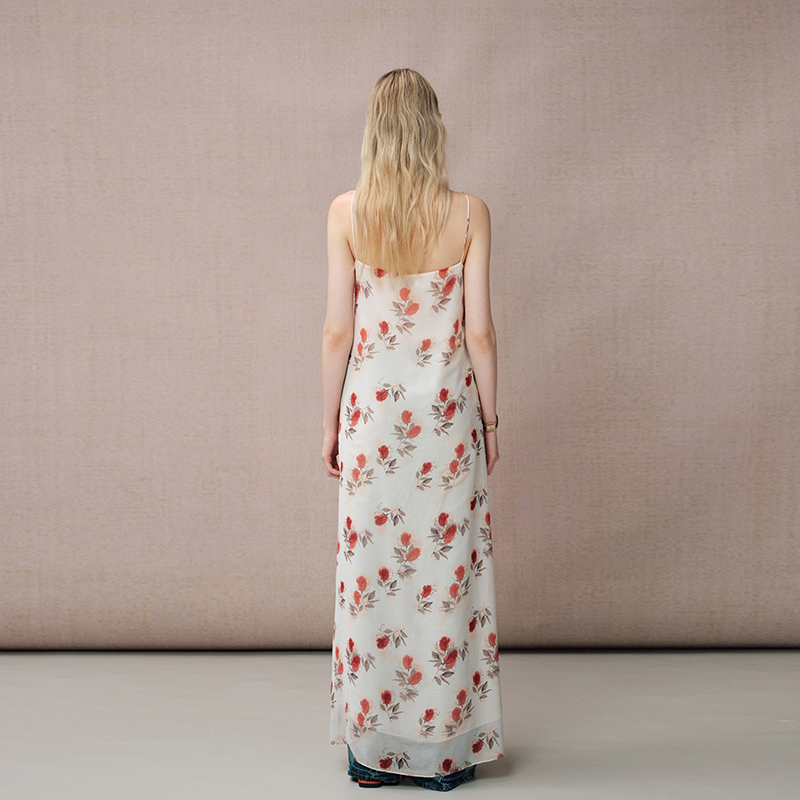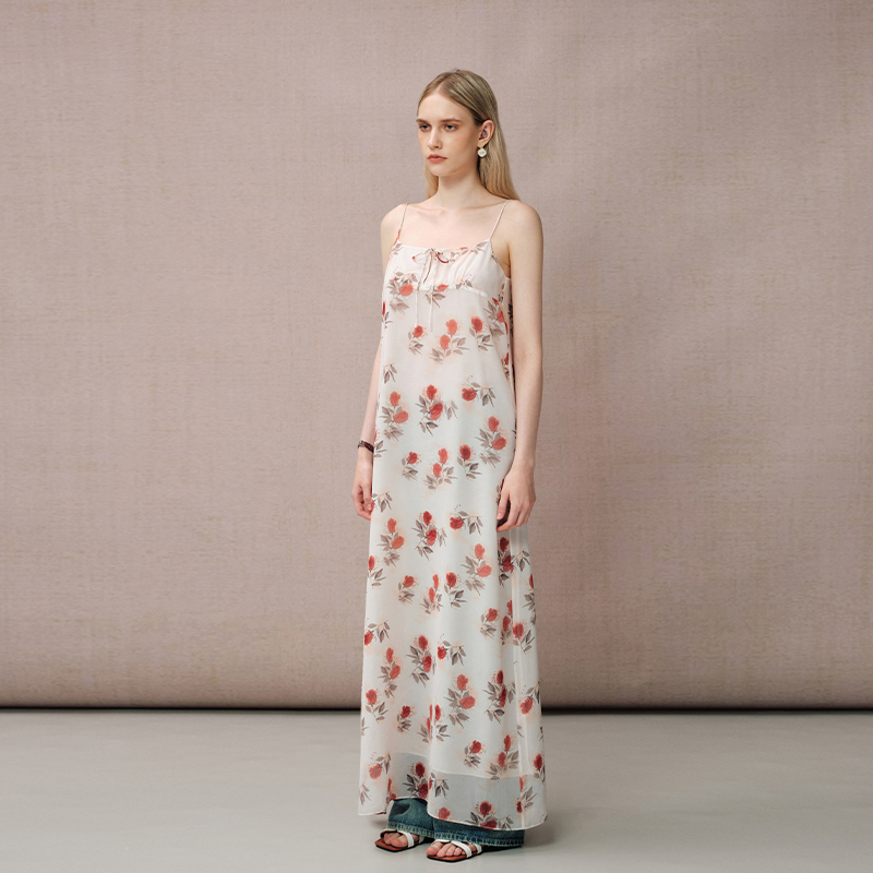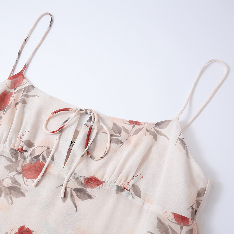 DIANAVEVINA2025夏季新款吊带连衣裙女时尚印花裙子雪纺长裙