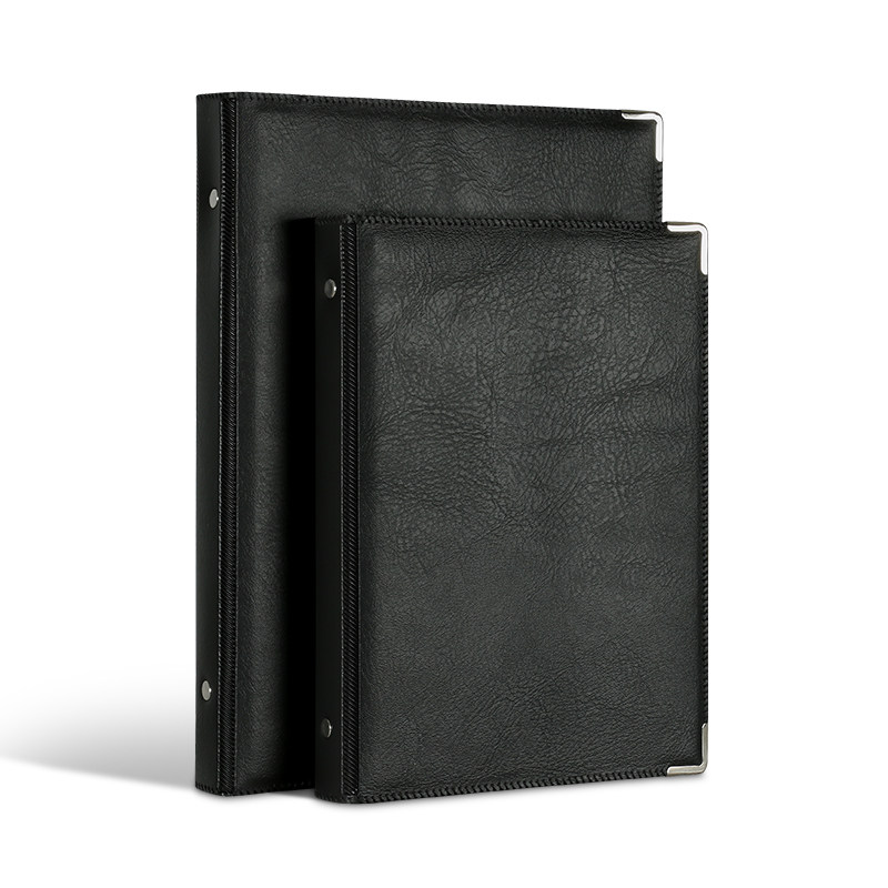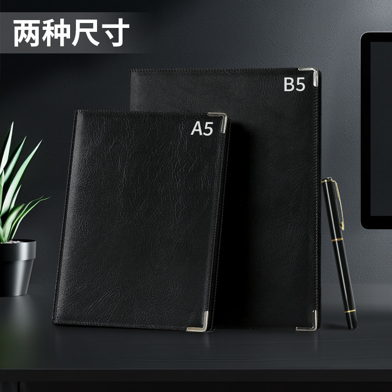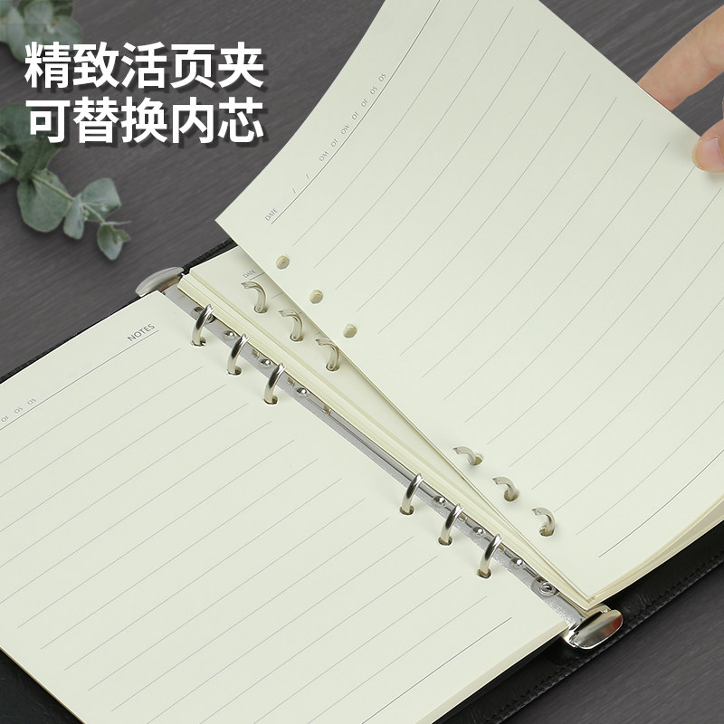 a5商务活页本笔记本定制logo可替换内芯金属边角6孔皮面b5记事本