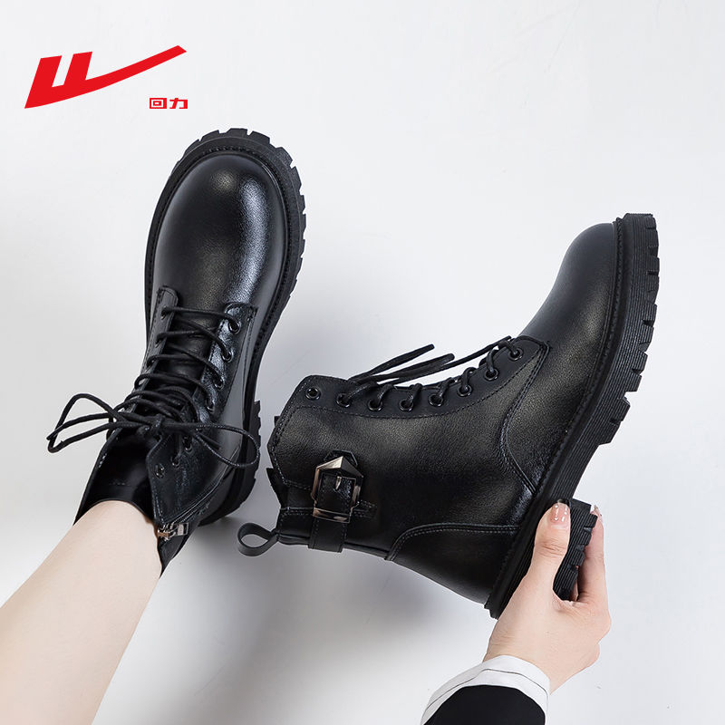 回力黑色马丁靴女款2025年爆款高级感炸街显瘦女靴厚底英伦风短靴