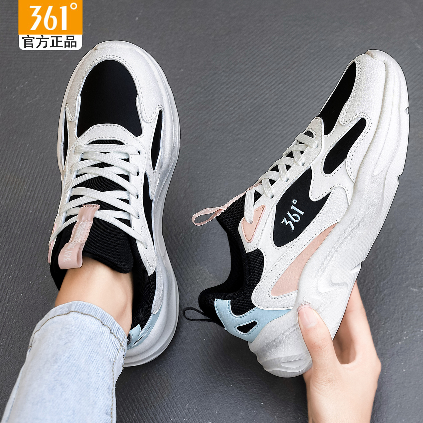 361运动鞋女皮面防水跑步鞋2025新款黑色鞋子春秋休闲鞋361度女鞋