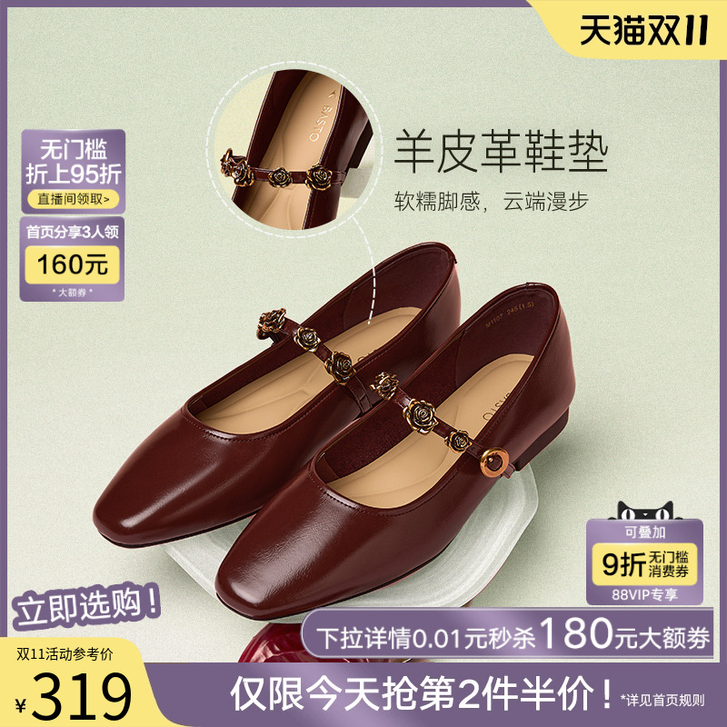 【管乐同款】百思图红玫瑰25秋新款玛丽珍鞋凉鞋女单鞋M1107AQ5