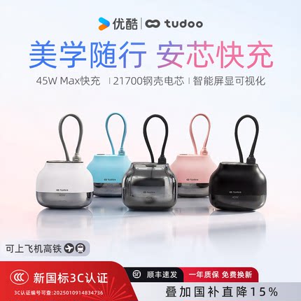 【新国标3C认证】tudoo安心豆充电宝10000毫安大容量45W超级闪充可上飞机高铁多合一移动电源小巧便携