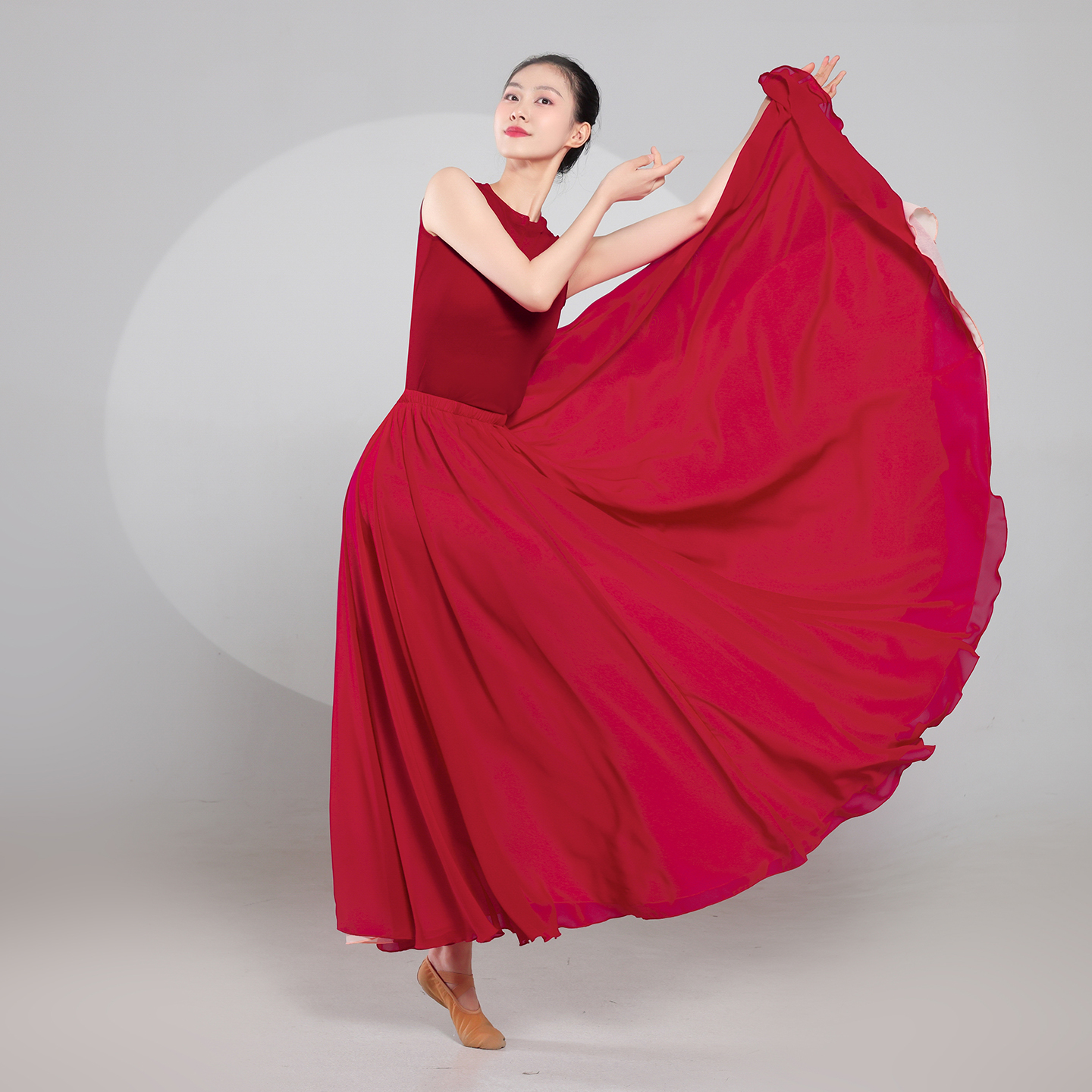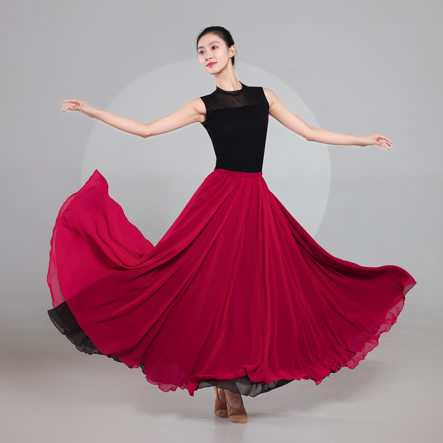 中国古典现代广场舞双层大摆裙半身长裙新疆光亮万疆舞蹈演出服