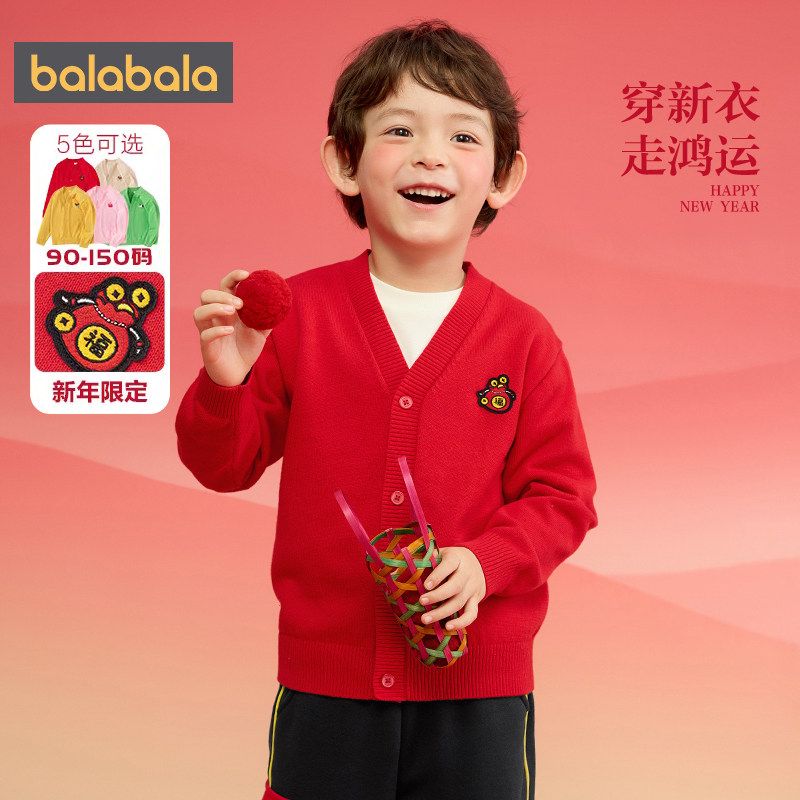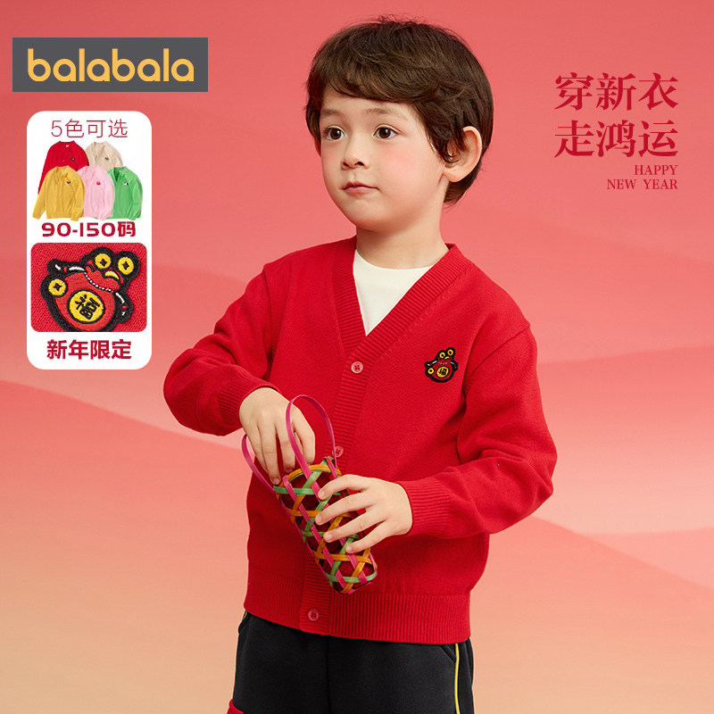 巴拉巴拉儿童针织衫男童女童开衫毛衣外套春装新款童装红色拜年服